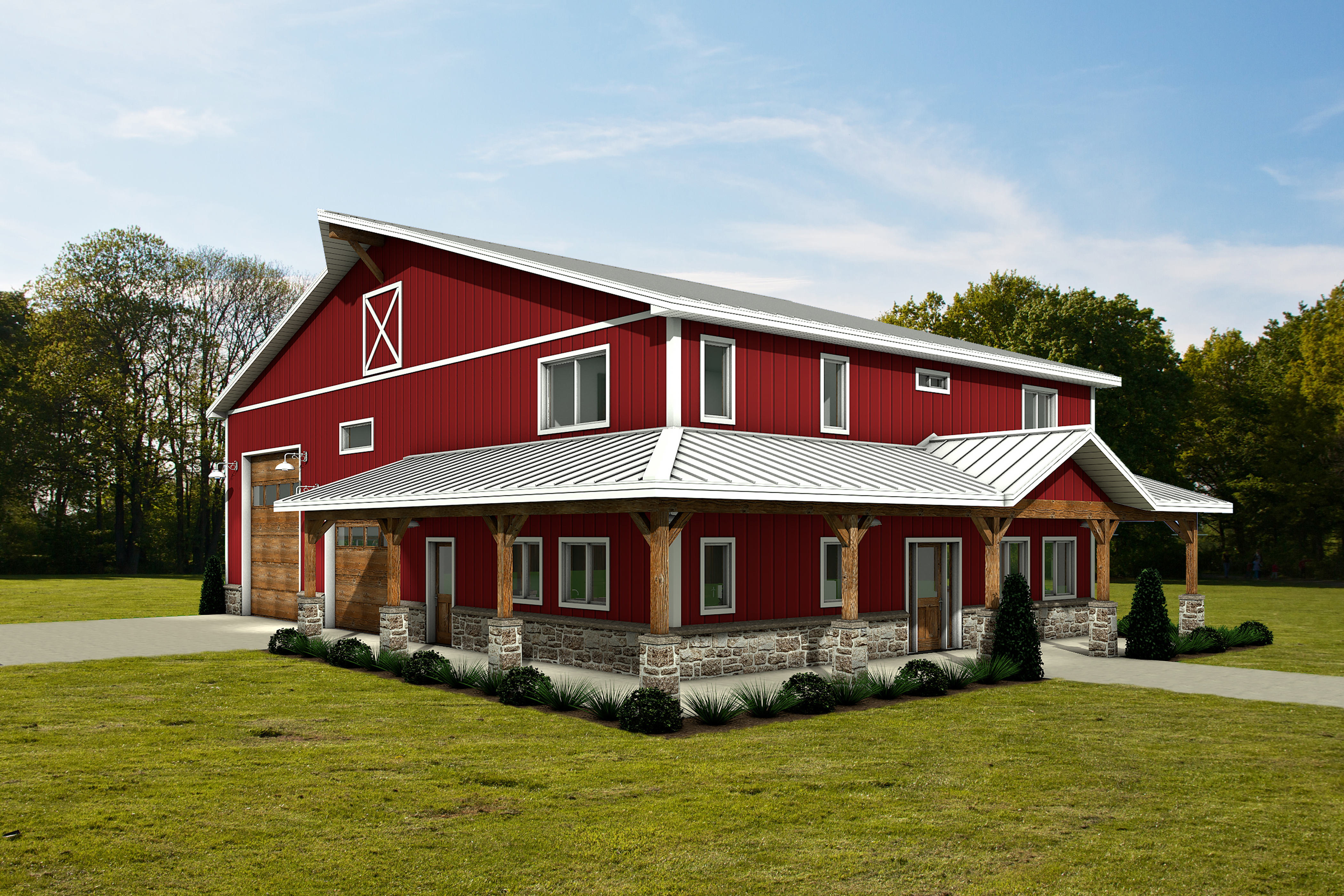 add landscaping and small bushes and shrubs around porch and building make it fall season it is mid day there are a few lights on in the house