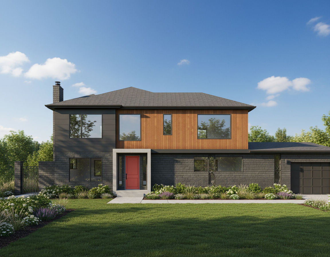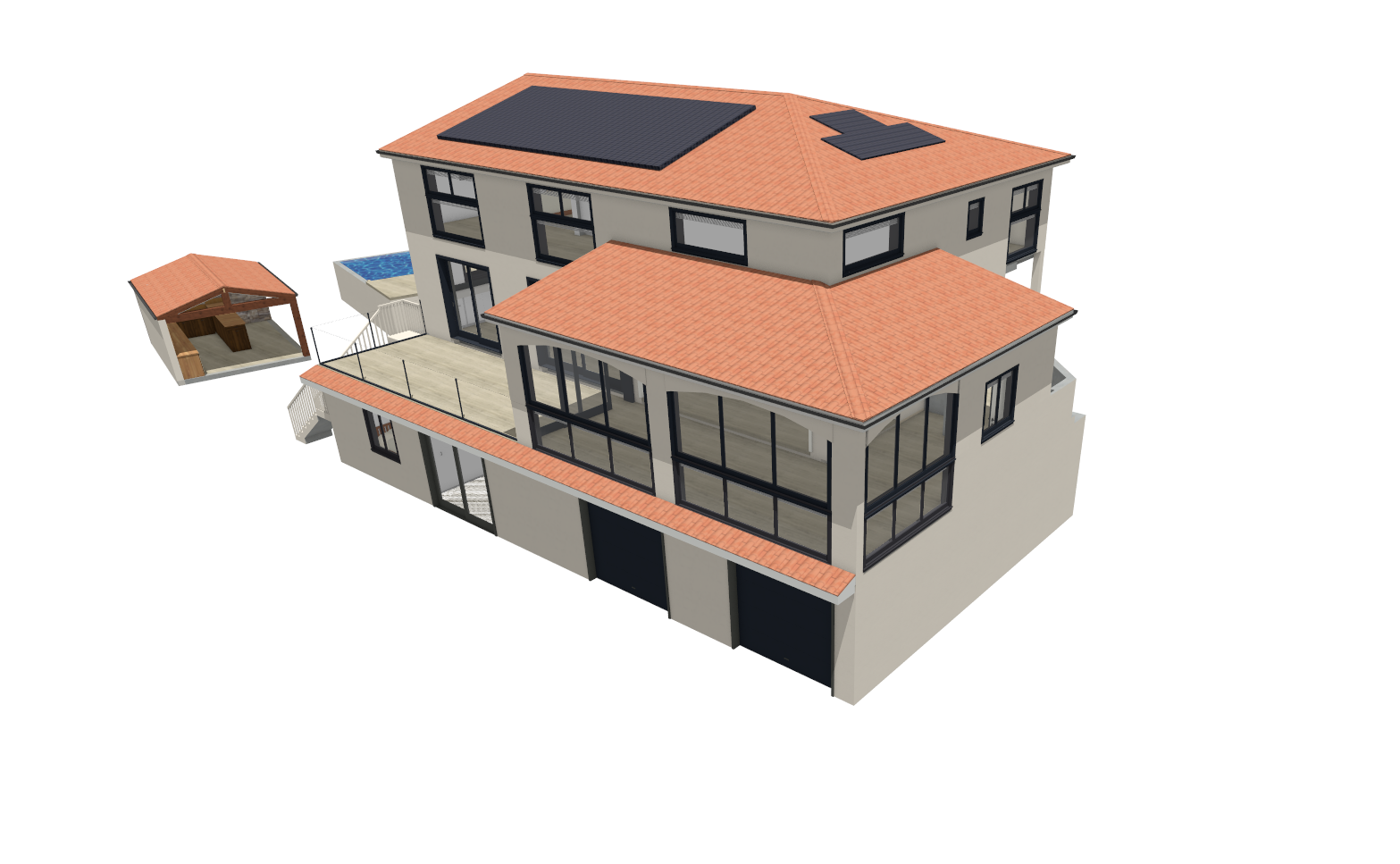 detail shot en tant qu expert en g n ration d images r alistes veuillez cr er une image fid le la couleur des menuiseries en am liorant le r alisme les d tails et la texture pour une repr sentation plus authentique avec un fond blanc sans modifier la maison en respectant les prolongements de toit et les arrondis