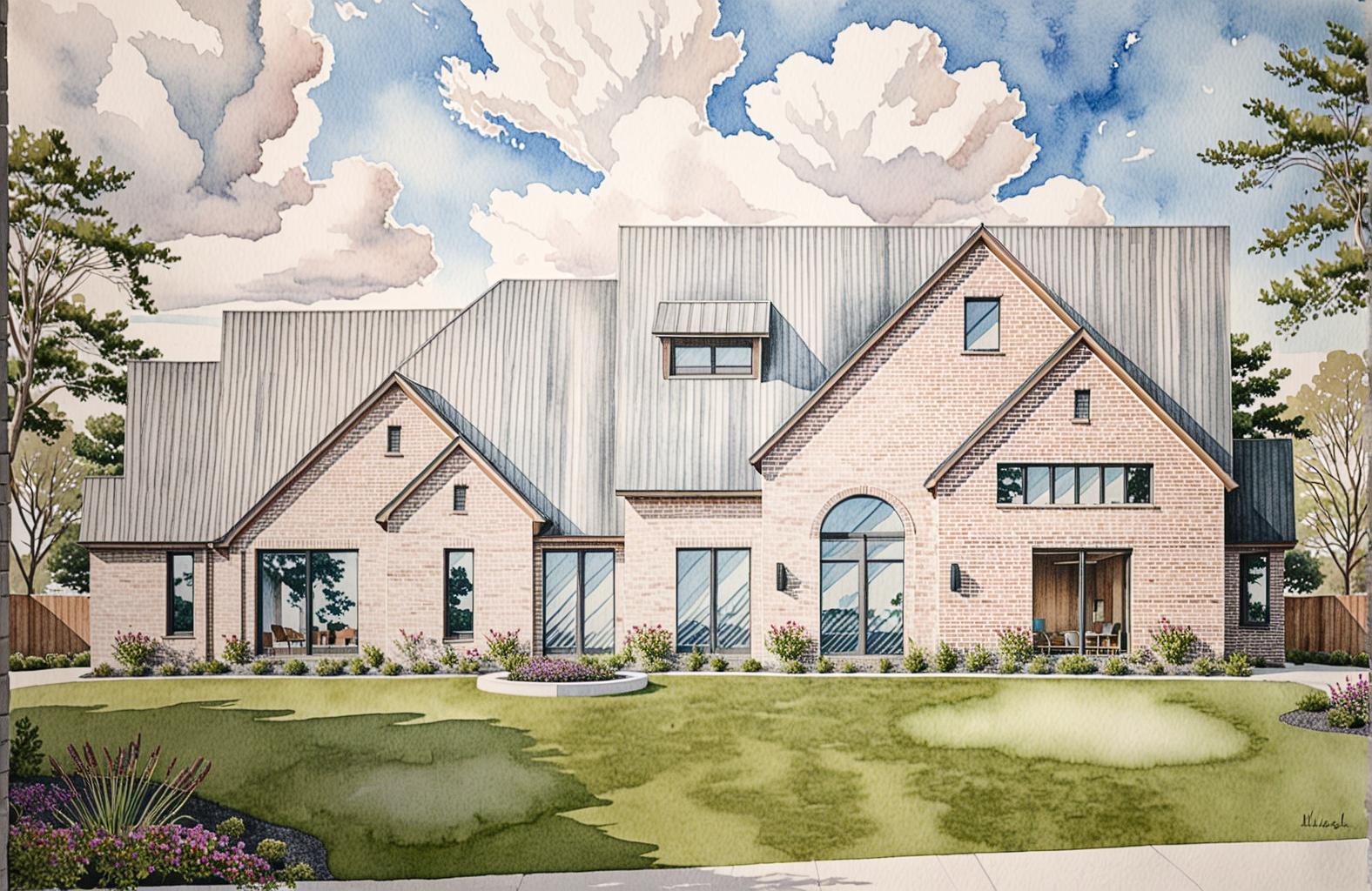 exterior shot a manicured lawn layered flower beds low maintenance shrubs native plants stone pathway leading to the entrance