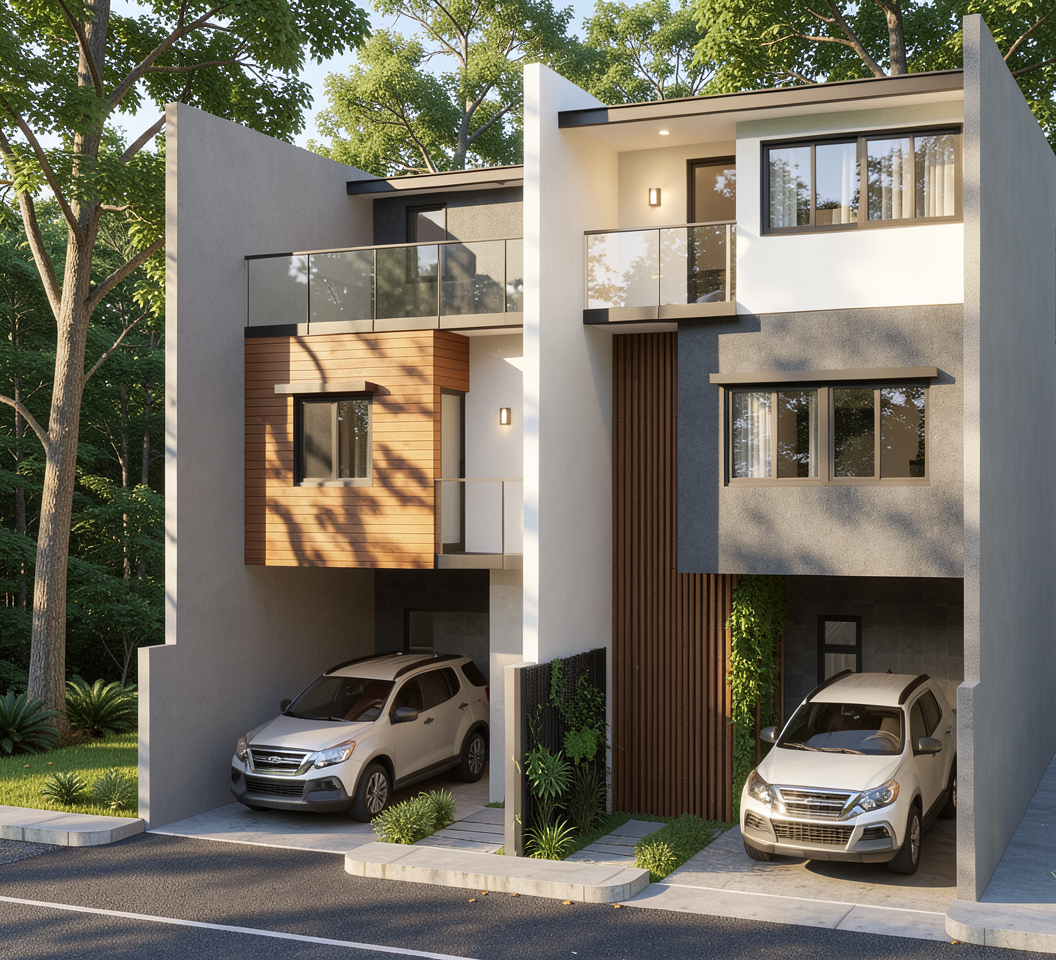 render an aerial view of a modern industrial park with four large warehouses the warehouses are sleek and contemporary painted in steel gray with reflective surfaces surround each building with pathways in textured charcoal black the surrounding lawns are lush and vibrant green meticulously maintained create a warm golden hour atmosphere with the sun setting casting long shadows and lending a golden hue to the entire scene enhance the sky with soft pastel pink and orange clouds to create a serene and beautiful ambiance
