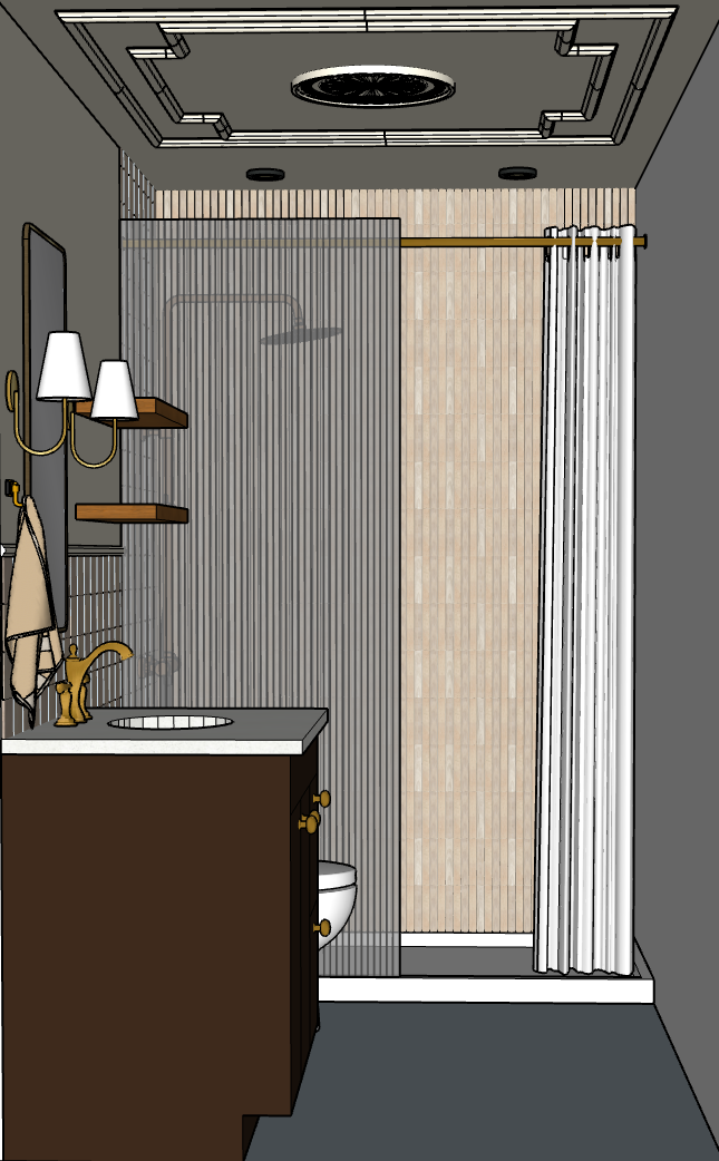 keep colours and finishes the same make the cabinets a medium warm wood tone