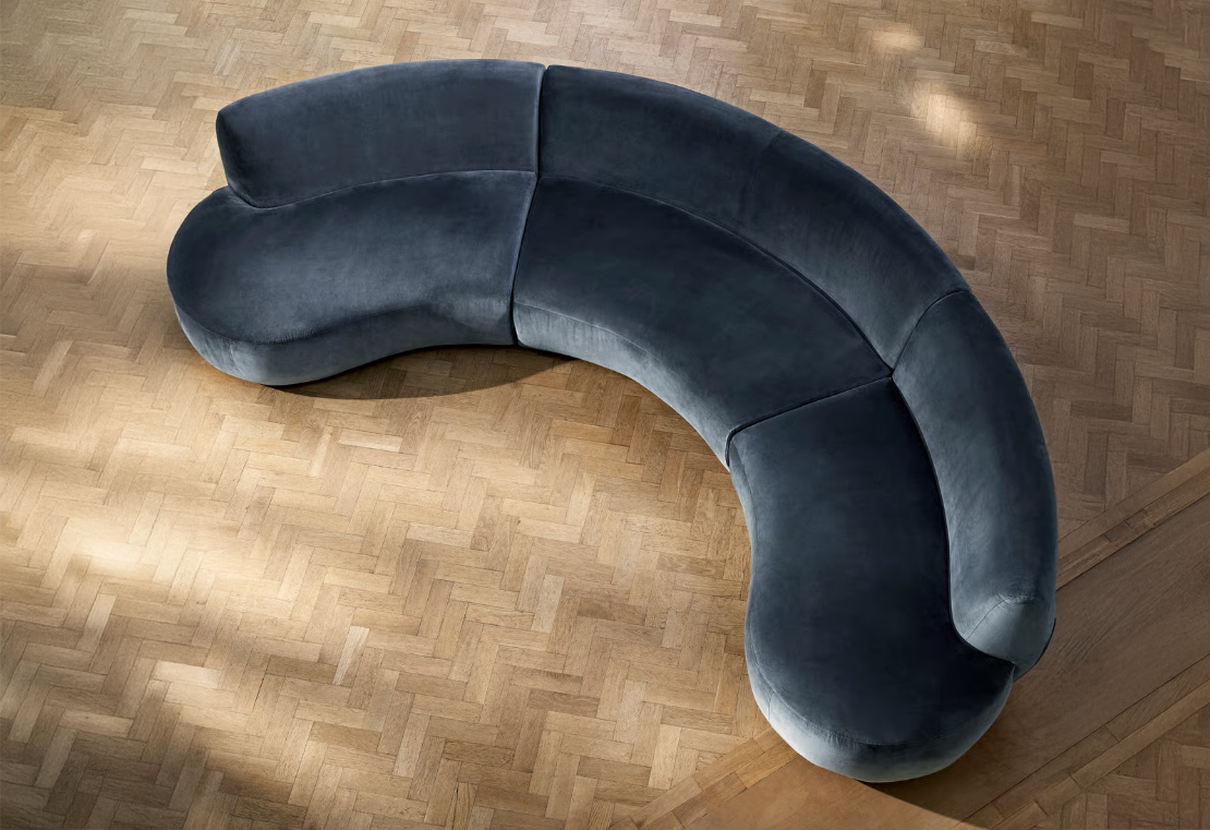 add an additional back cushion on the entire back of this blue sofa to create a layered look where it has two layers of back cushion