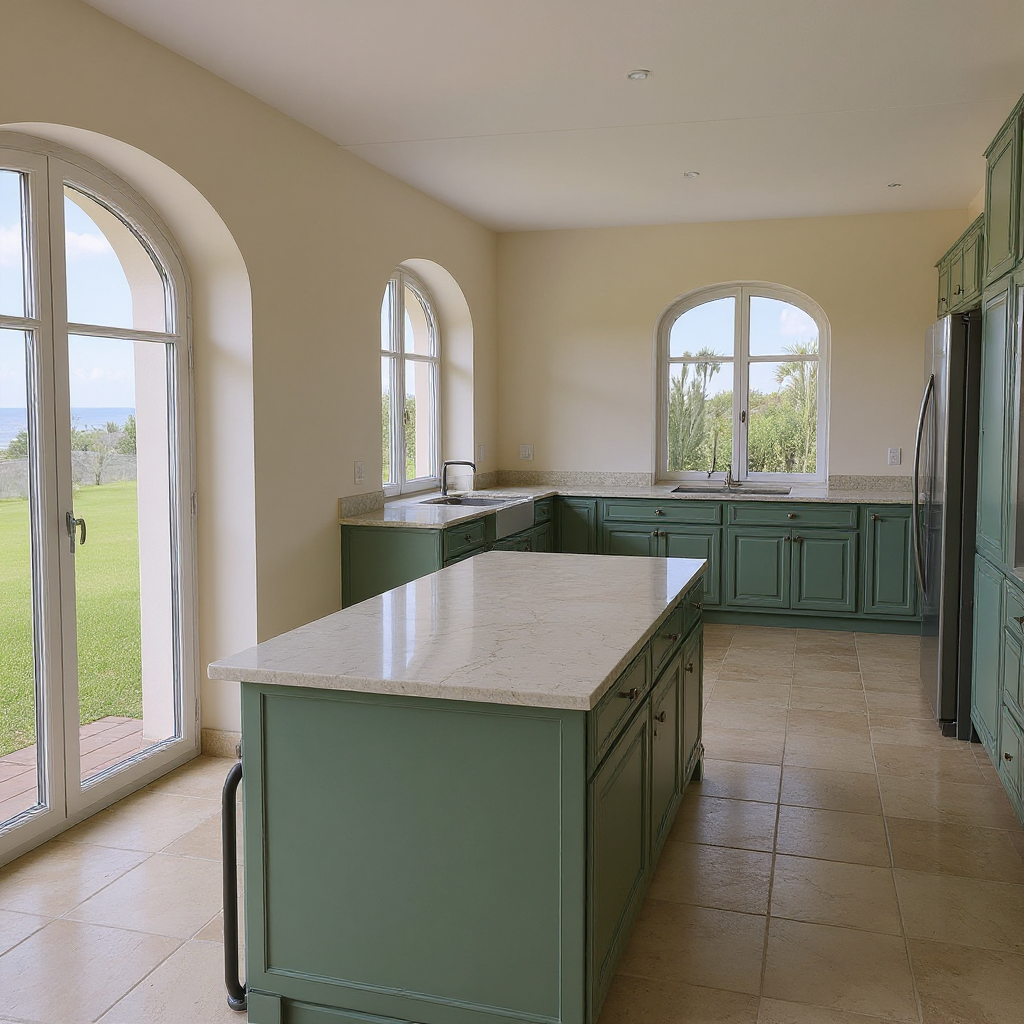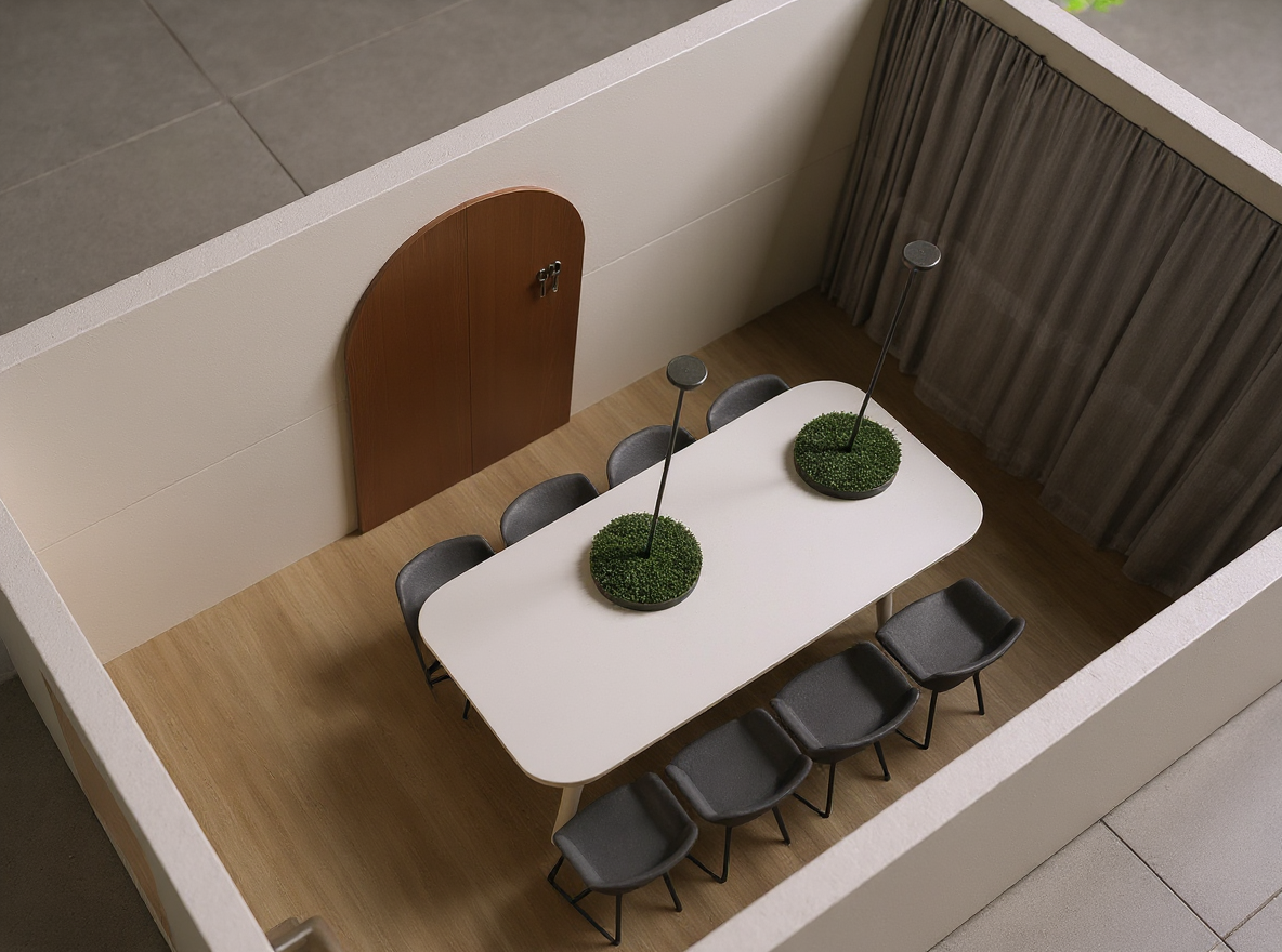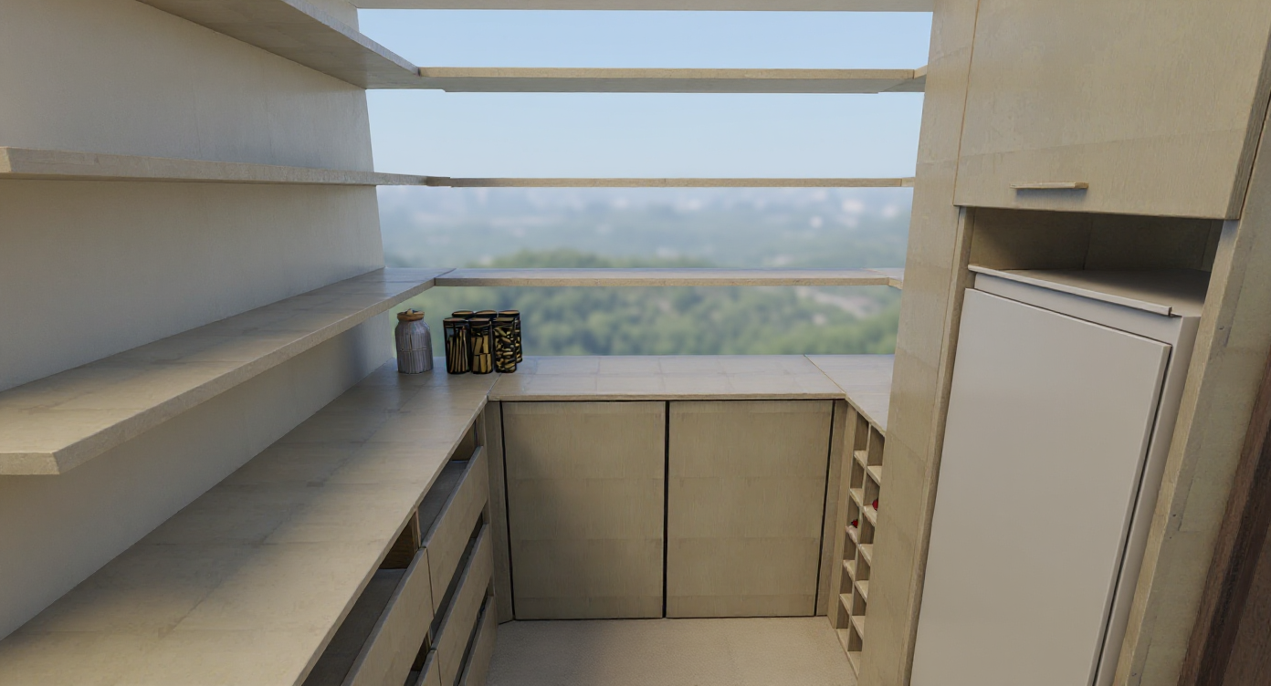 keep the same aerial view of a modern suburban neighborhood featuring rows of minimalist white and grey plaster houses with flat gray bitumen roofs and len to without wall next to it some of the roofs have solar panels installed the houses are neatly aligned each surrounded by lush green lawns and separated by elegant red boundary lines change red line to dark grey metal wire fences building height scots pine line the gray asphalt roads and dark grey paving in both sides of the road adding a natural touch to the geometric layout there are no trees in the borders of the picture the scene is bathed in soft warm sunlight creating a serene and harmonious atmosphere