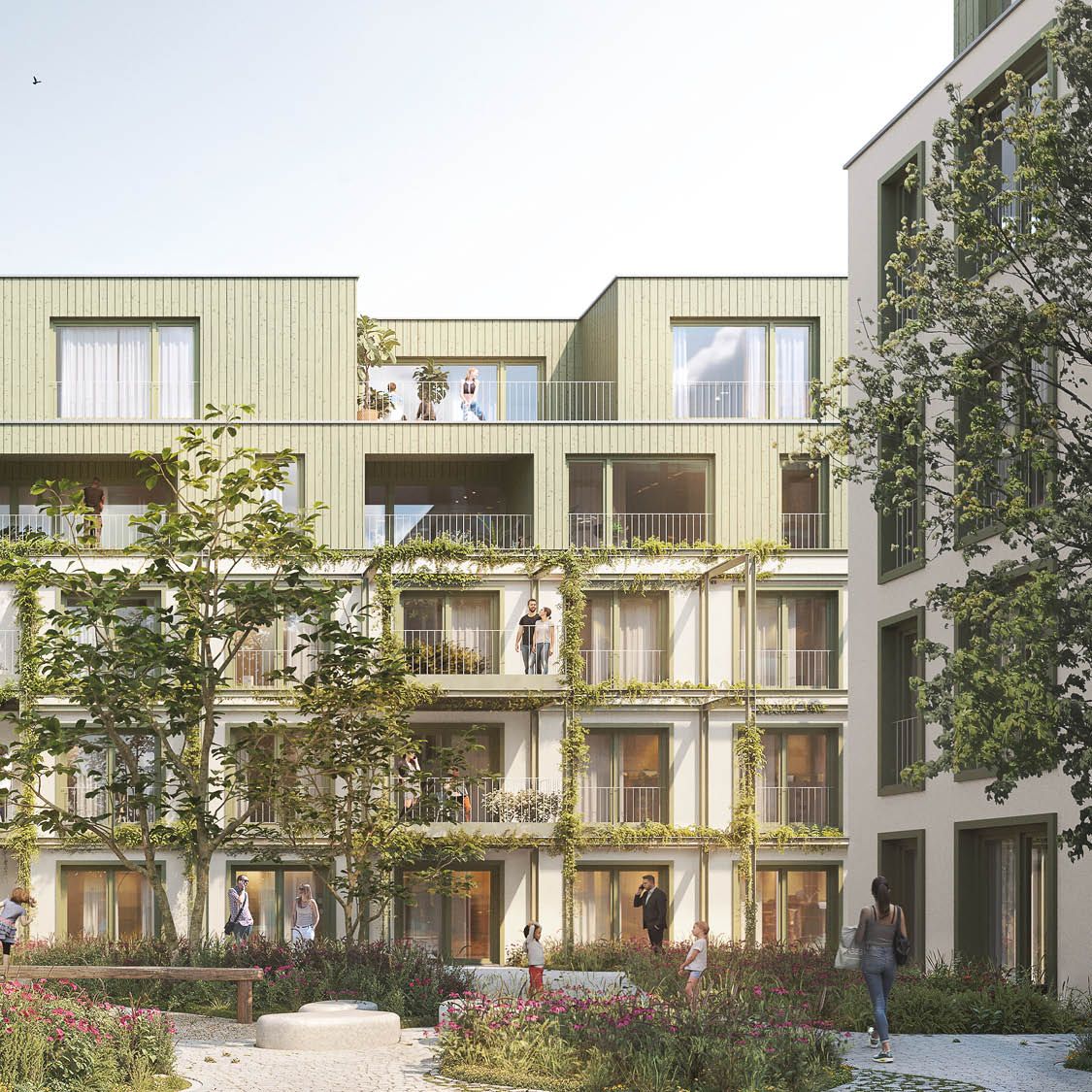 exterior shot exterior shoot vegetation 5 to 6 story residential building with balcony add windows and texture