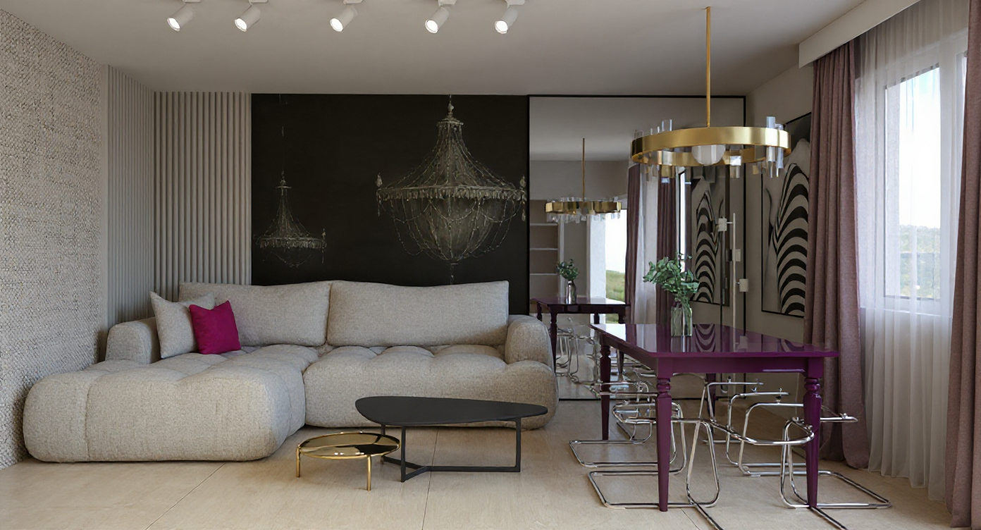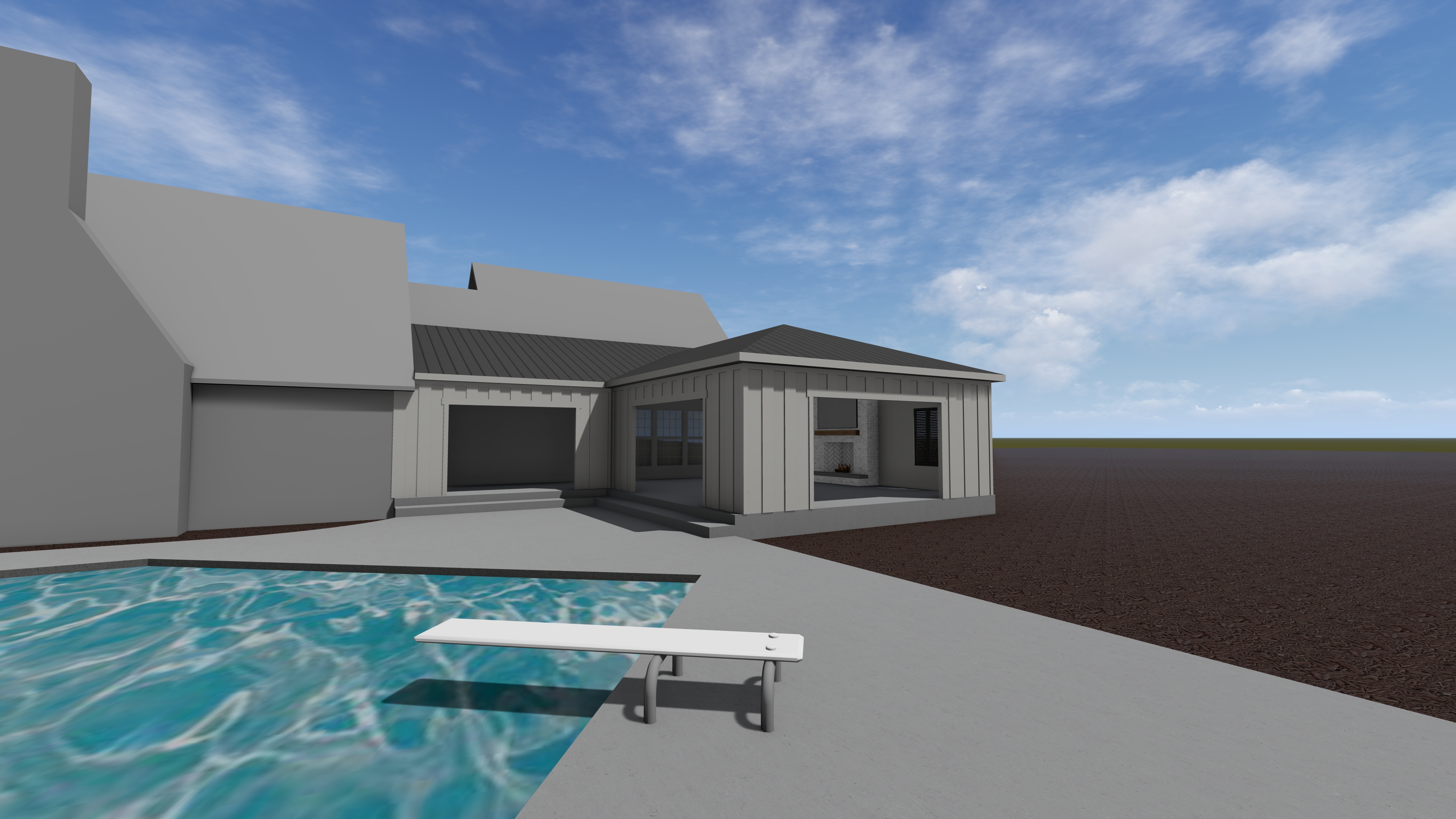 realistic render cloudy sky simple shrubs manicured lawn wooded background