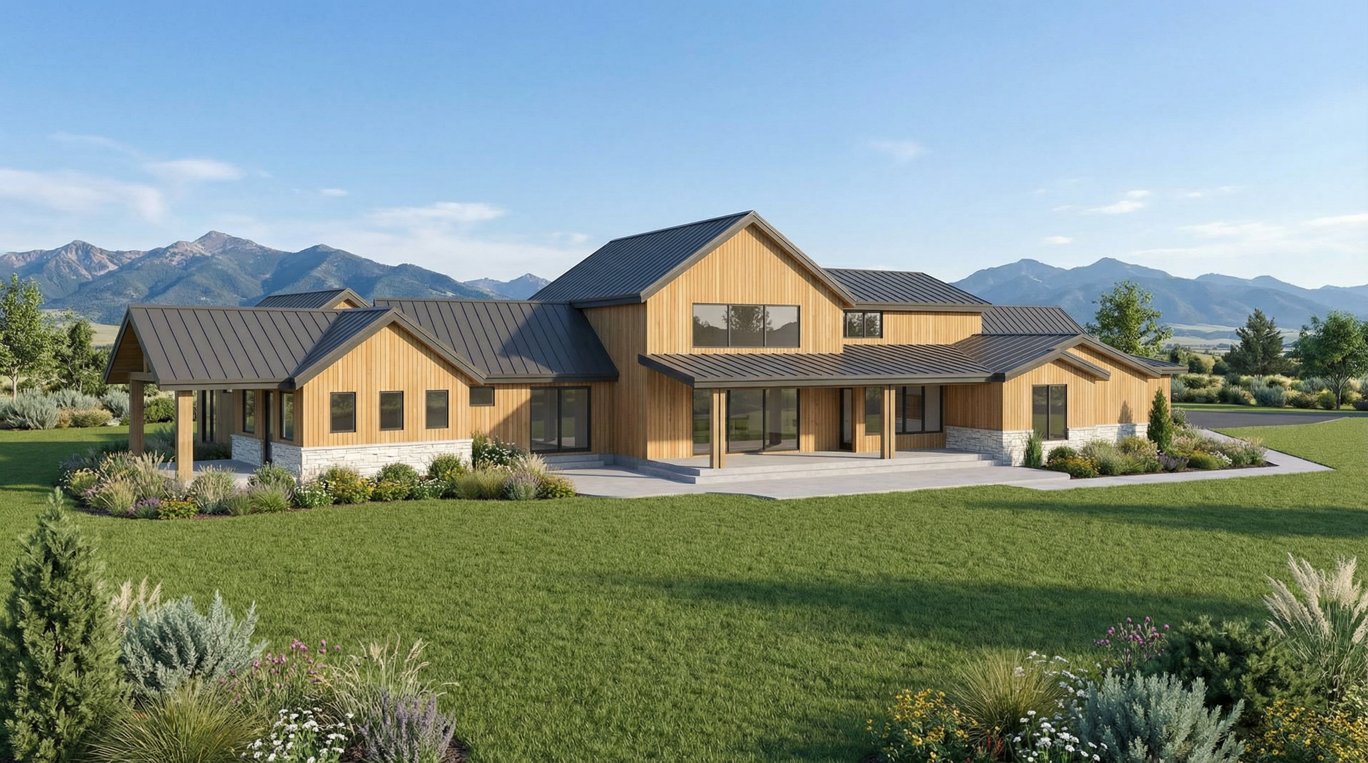 late evening light outside the windows add light from the recessed lights add some accessories and books on the shelves at the left side of the view add a woman standing at the sink in the kitchen add a man sitting on a middle stool at the counter add some appetizers wine glasses and a bottle of red wine on the counter make the light level in the kitchen a little lower and warmer in color show the white calcutta same material on the wall of the kitchen as the counter add light from the recessed lights add some appetizers wine glasses and a bottle of red wine on the counter make the light level in the kitchen a little lower and warmer in color keep the shoes in the cabinet in the source image the upper cabinets in the kitchen are white make the entry door glass translucent all of the walls and ceilings are painted white do not add any windows to the rendering keep the white louvered shutters over the kitchen window in the source image