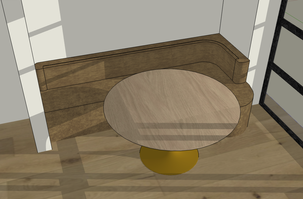 photorealistic interior render of a custom curved banquette upholstered in woven mohair fabric the upholstery must look like true mohair upholstery matte finish fibrous slightly coarse surface visible individual short hairs subtle uneven texture and color variation no smooth pile no directional sheen no plush velvet appearance this fabric is not velvet velour suede chenille or microfiber do not render the surface as smooth shiny or uniform mohair should appear dry tactile and softly irregular with light diffusing across the surface instead of reflecting preserve exact geometry and proportions soft natural daylight from the window warm neutral walls and light oak flooring high end residential realism do not add or remove elements