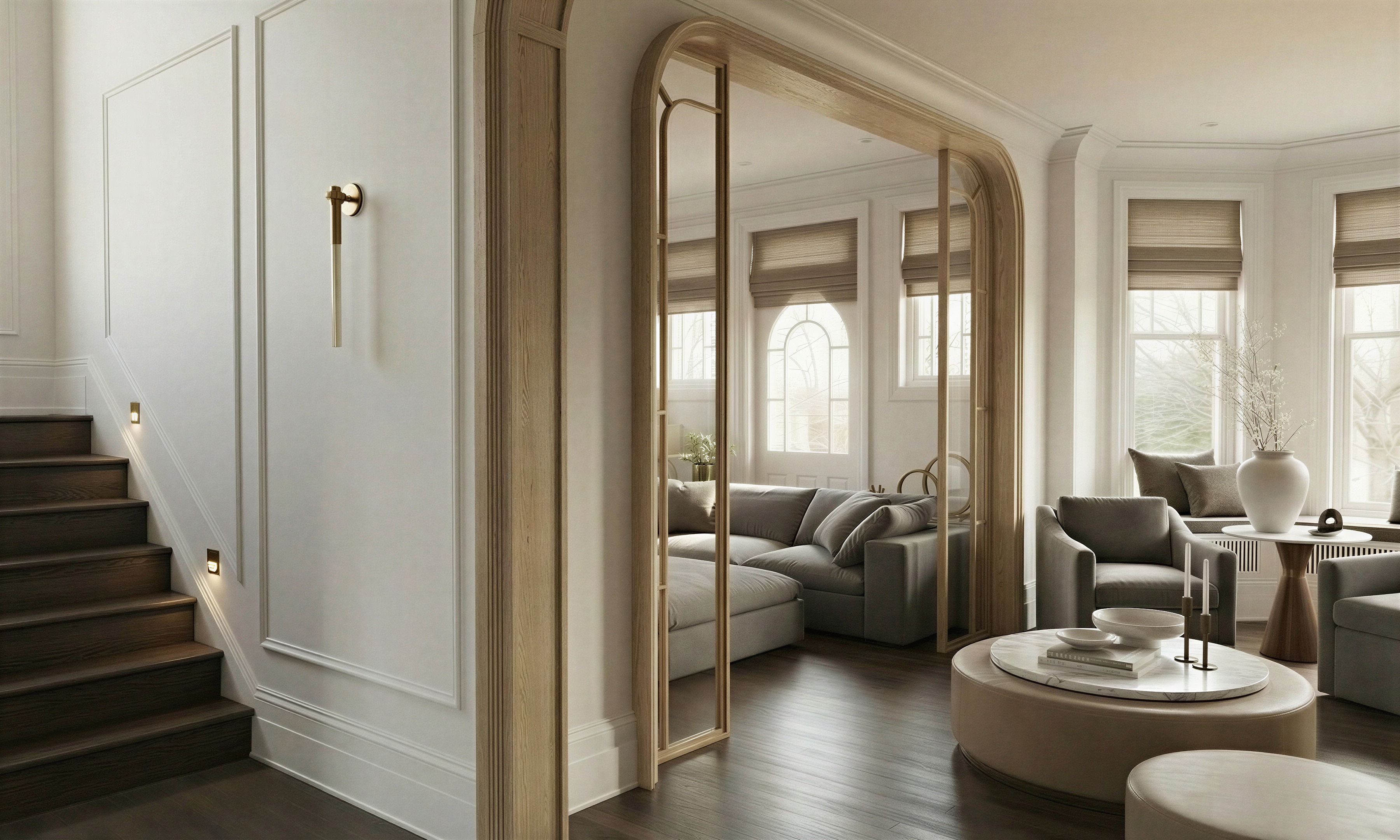 keep everything the same dont change anything simply but the first step and first riser of the staircase in a chic honed white carrara marble