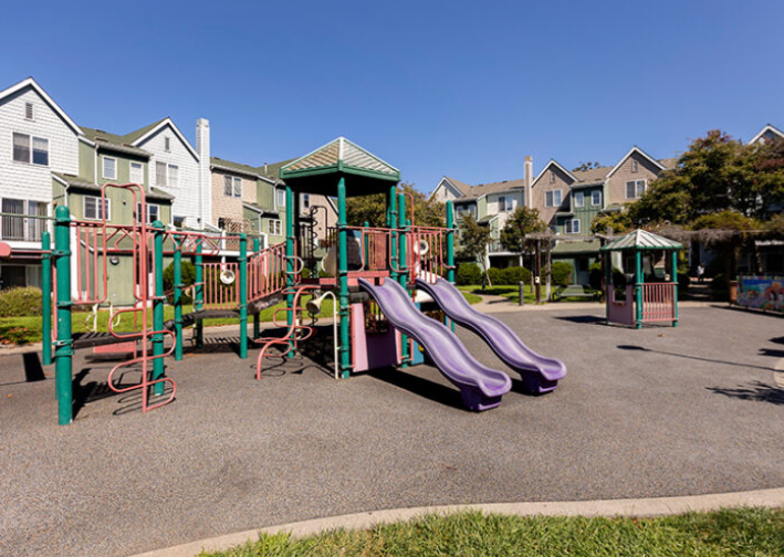 make this playground modern and pristine black or dark gray and walnut wood accents