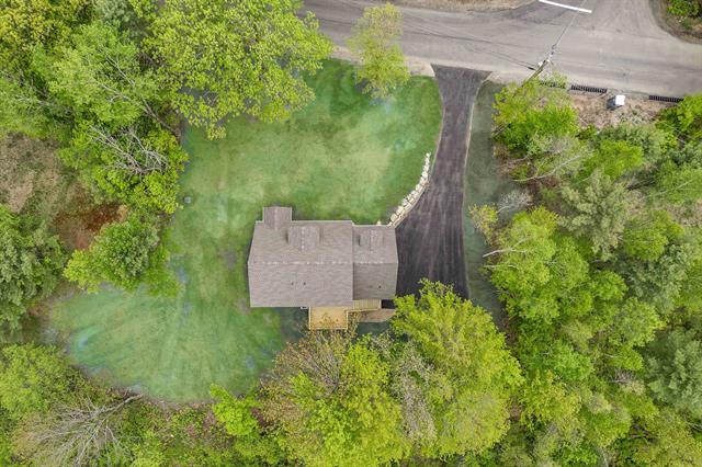 a fresh layer of snow over the grass and roof keep the driveway and road clear