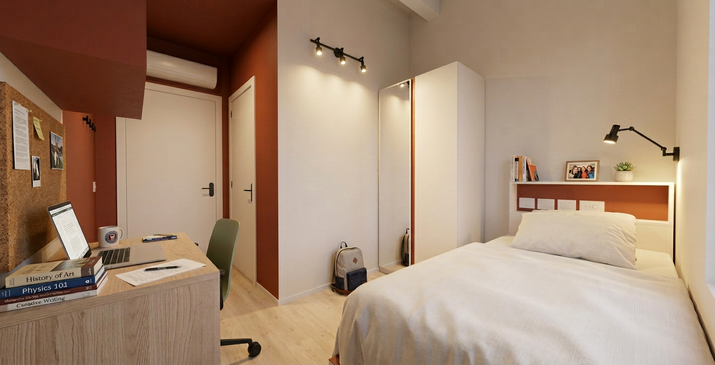 modern building facade with white glazed brick 210 50 mm and light white mortar joints combined with smooth white architectural concrete windows and parapets in champagne rose anodized aluminium colour like the source image minimalist contemporary architecture photorealistic materials soft daylight high detail architectural render warm sunset lighting with soft golden sunlight creating gentle highlights and long shadows on the facade highly realistic materials accurate textures natural reflections and global illumination architectural visualization quality high detail realistic proportions include one discreet human figure in the scene to provide scale standing or walking near the building visually subtle and not the focus of the image clean contemporary architecture minimal composition high resolution photorealistic render