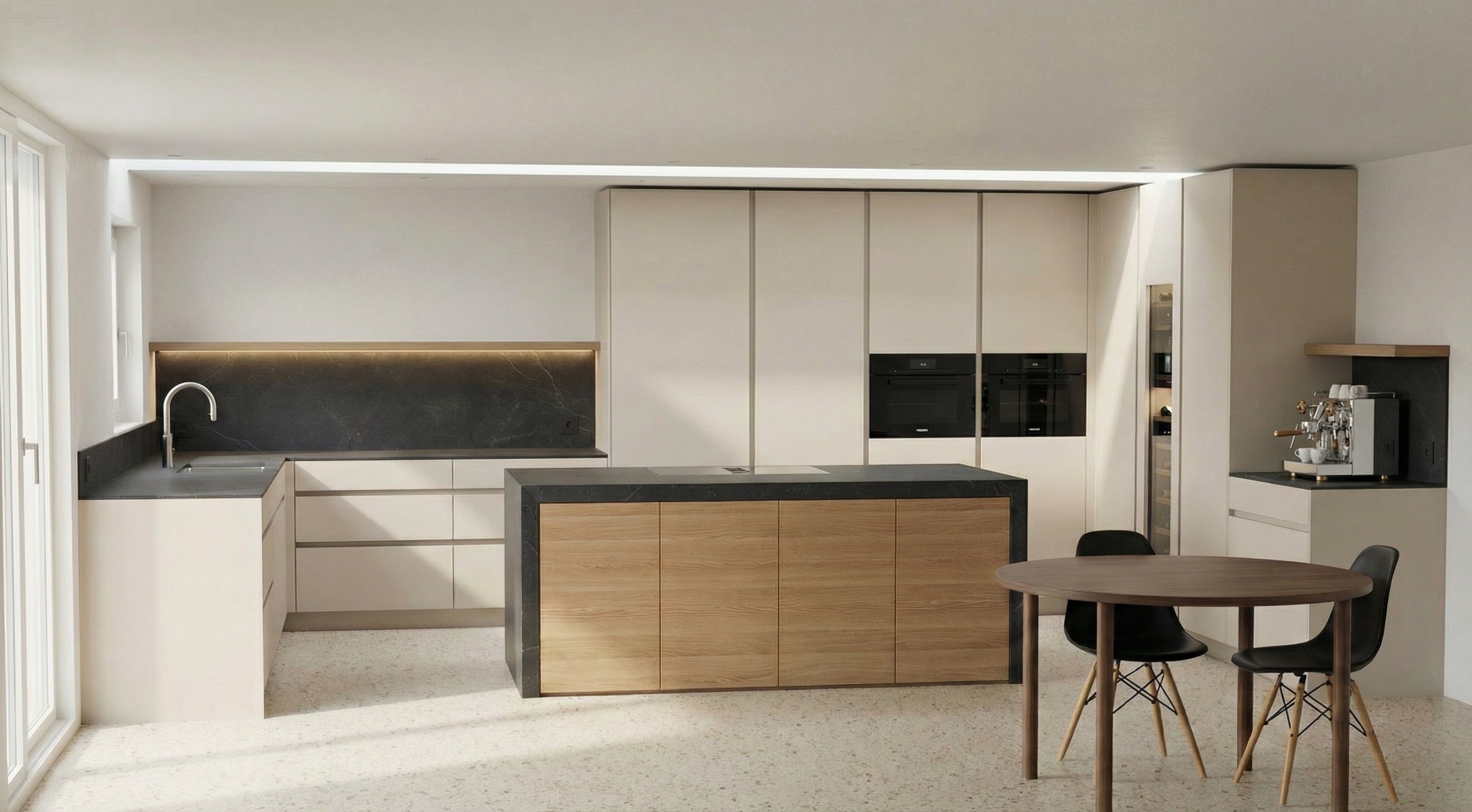 dekoration auf k chenarbeitsplatte und den beiden tablaren einf gen keine materialien ndern keine bestehenden geometrien ver ndern keine griffe oder griffprofile hinzuf gen keine zus tzlichen glasvitrinen hinzuf gen keine st hle hinzuf gen keine zus tzlichen wandtablare generieren