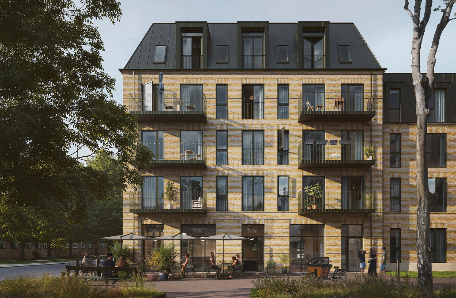 exterior shot make the render as close to the mood board as possible