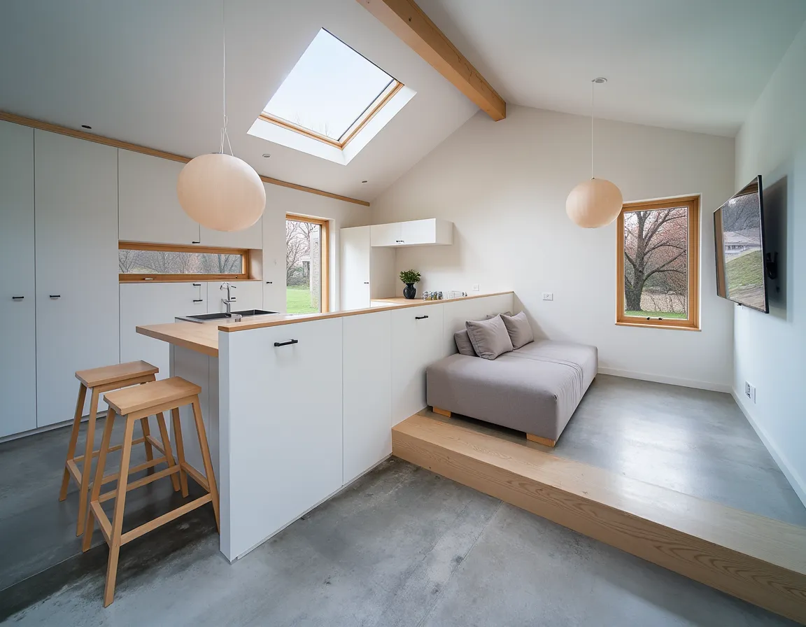 extend the edges of this image so that the sides of the house are not cropped out keep everything else the same consistency with materials and lighting etc keep the board and batten on those two areas and keep the stone on the appropriate areas as well