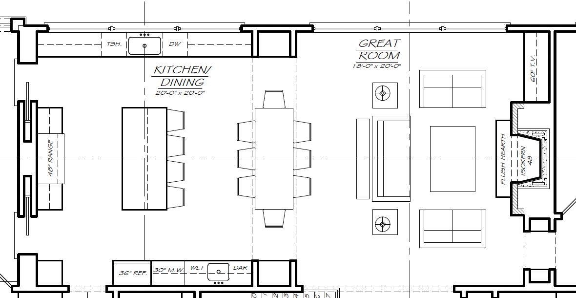 generate rendering of the attached floor plan please place walls and cabinets as noted also add furniture as noted