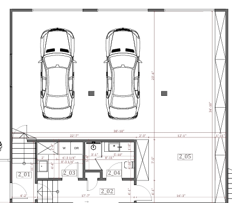 modern garage black walls epoxy black and white speckled floors linear lights