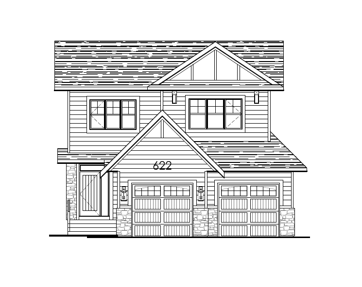 render this home to best match the reference image but add full front yard landscaping and concrete driveway