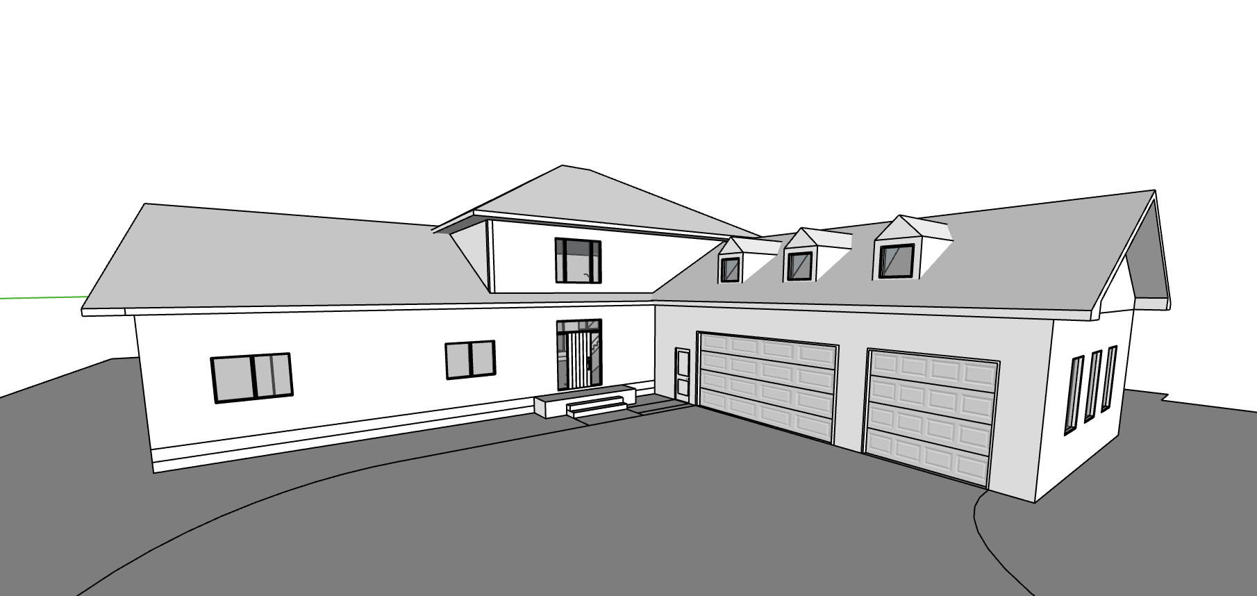 exterior shot a charming modern home exterior featuring a sleek white facade with soft grey trim the roof is a cool slate gray windows are large with black frames and clear glass that reflects a clear blue sky the garage doors are white with subtle paneling the driveway is a smooth light concrete surround the house with lush green grass and add a vibrant flower garden with reds yellows and purples the atmosphere is calm and serene with warm dappled sunlight casting soft shadows evoking a peaceful suburban morning