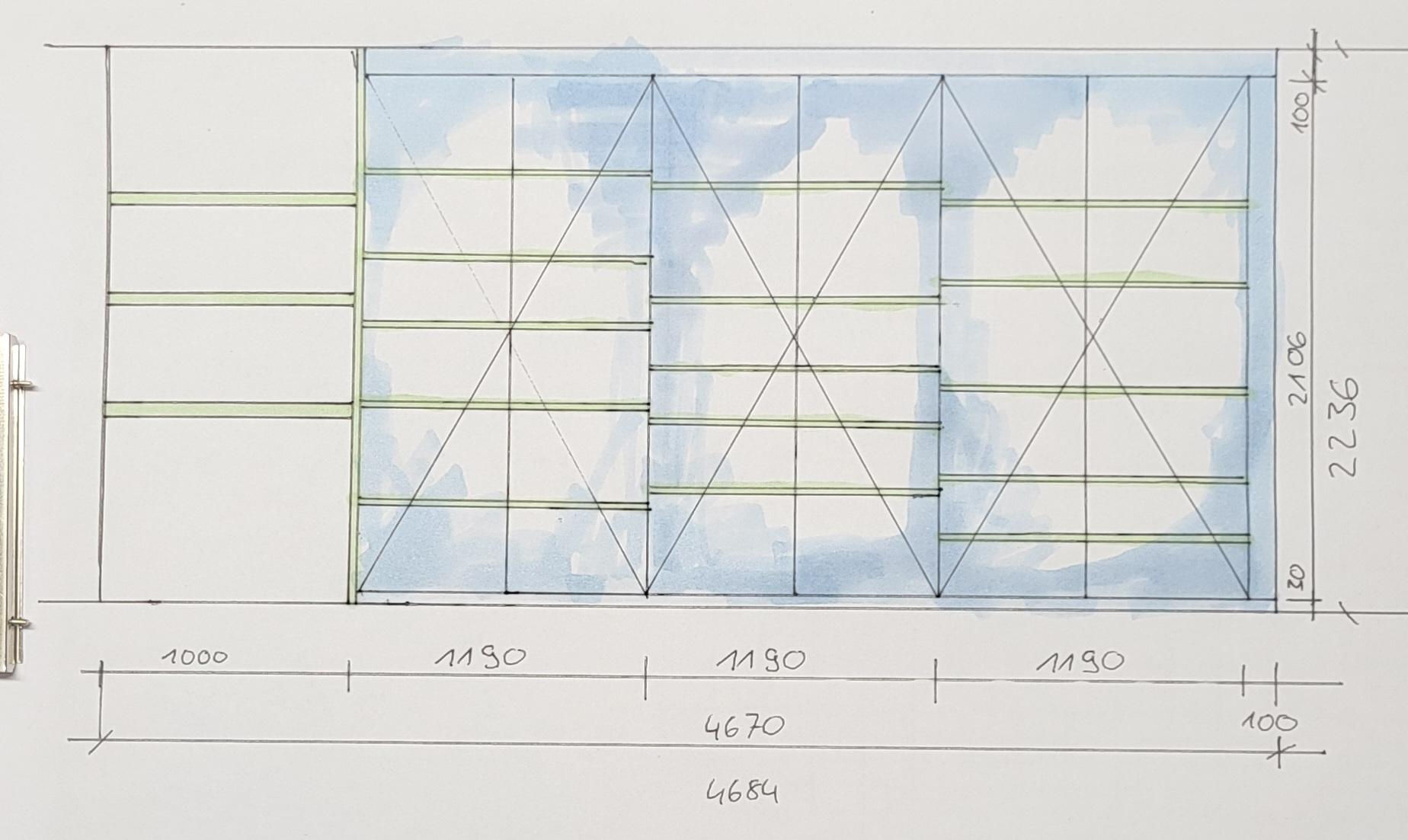 moderne einrichtung sanfte schatten scharfe details raum h he 2236 mm breite 44684 mm tiefe 400 mm w nde farbe weiss boden hellgrau decke weiss schrank ausf hrung front weiss u 570 vl beschichtet innen graphitgrau beschichtet blende oben 100 mm beschl ge topfband schwarz von links nach rechts in der breite von 1000 mm ablage 30 mm dicke auf der h he von 900 mm mit einer tiefe von 400 mm oberhalb der ablage mit abstand von je 400 mm 2 tablare fest breite 1000 mm tiefe 250 mm fest montiert unsichtbar abteil 1 2 fl glig breite 1190 mm innen 5 verstellbare tablare t ren haben unten einen abstand zum boden von 30 mm abteil 2 2 fl glig breite 1190 mm innen 5 verstellbare tablare t ren haben unten einen abstand zum boden von 30 mm abteil 3 2 fl glig breite 1190 mm innen 5 verstellbare tablare t ren haben unten einen abstand zum boden von 30 mm anpassleiste 100 mm keine kleiderstangen nur tablare in den schr nken schrank innen farbe alles in graphitegrau
