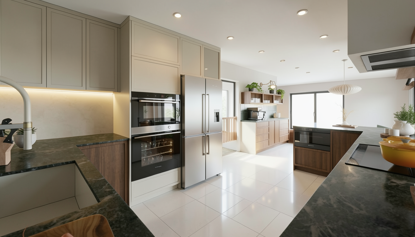 make the view behind this house a pool looking over the ocean with lots of tropical greenery make the time of day like 4pm make the textured stone wall a heavier texture and make the floor a beige terrazo floor