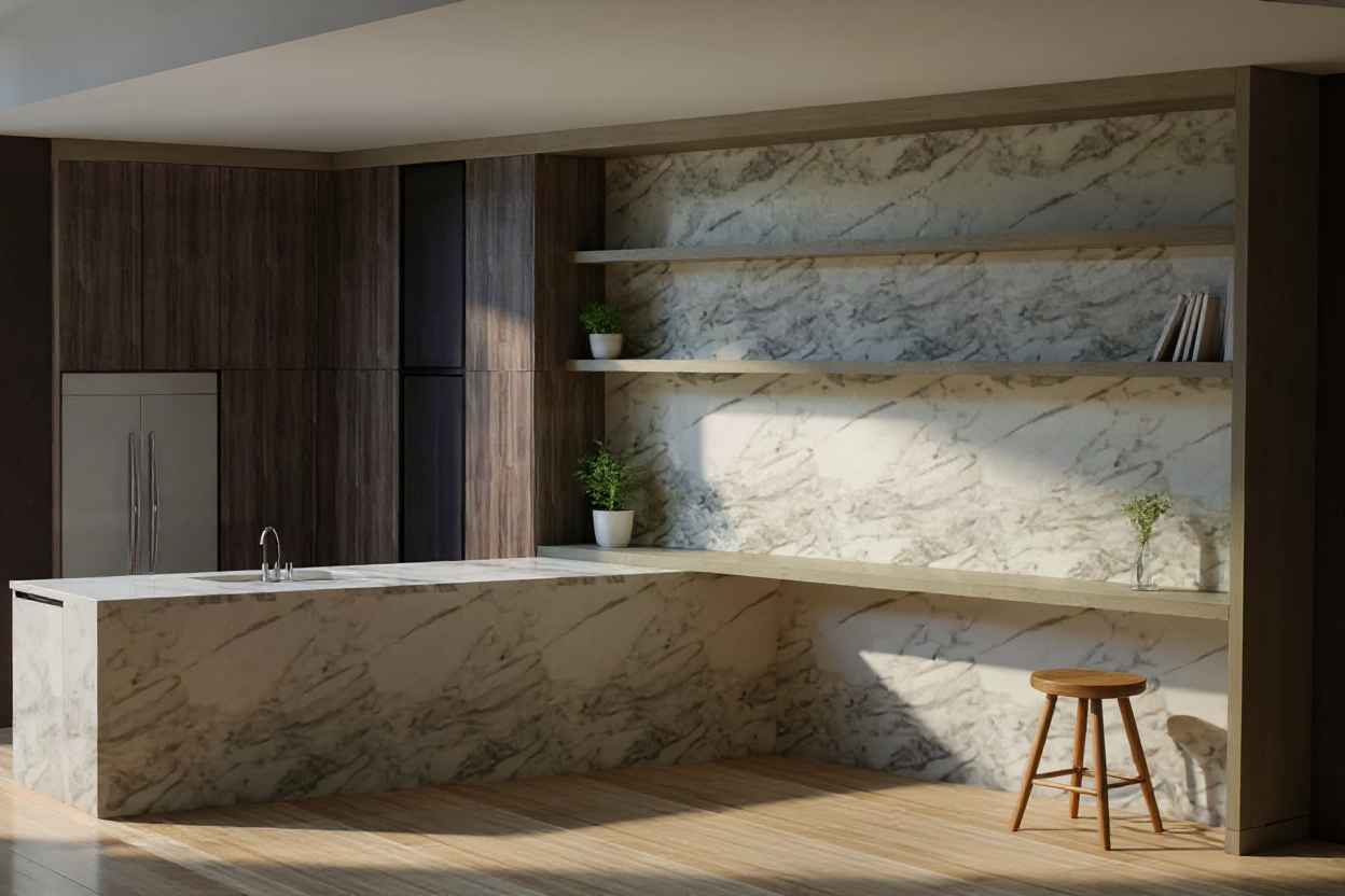 extend the edges of this image so that the sides of the house are not cropped out keep everything else the same consistency with materials and lighting etc