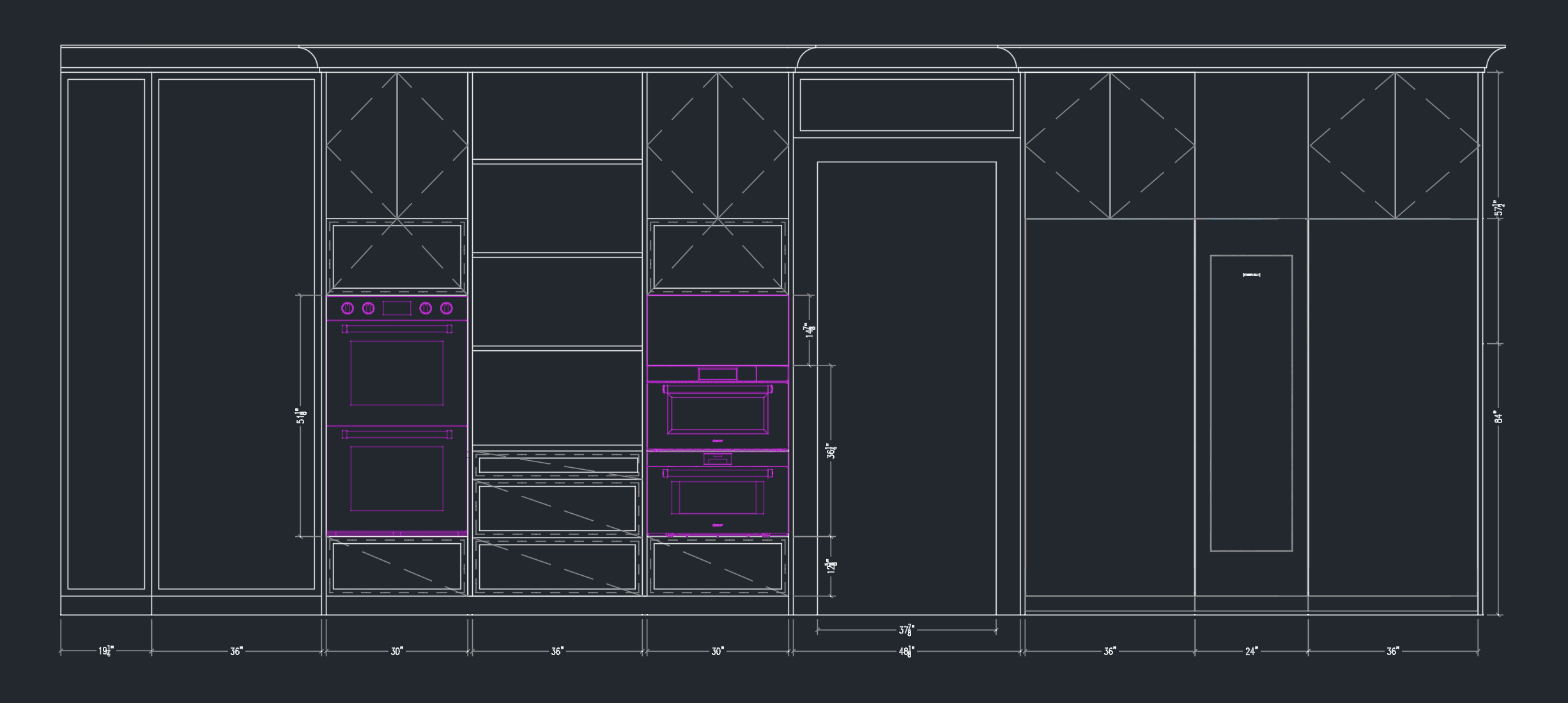exterior shot cabinetry is white with a 1 1 2 shaker door drawer face the appliances in purple are stainless steel appliances include stone on the counter top make the floating shelves in the middle of the spaces set back 14 total depth shown around 24 for the whole unit