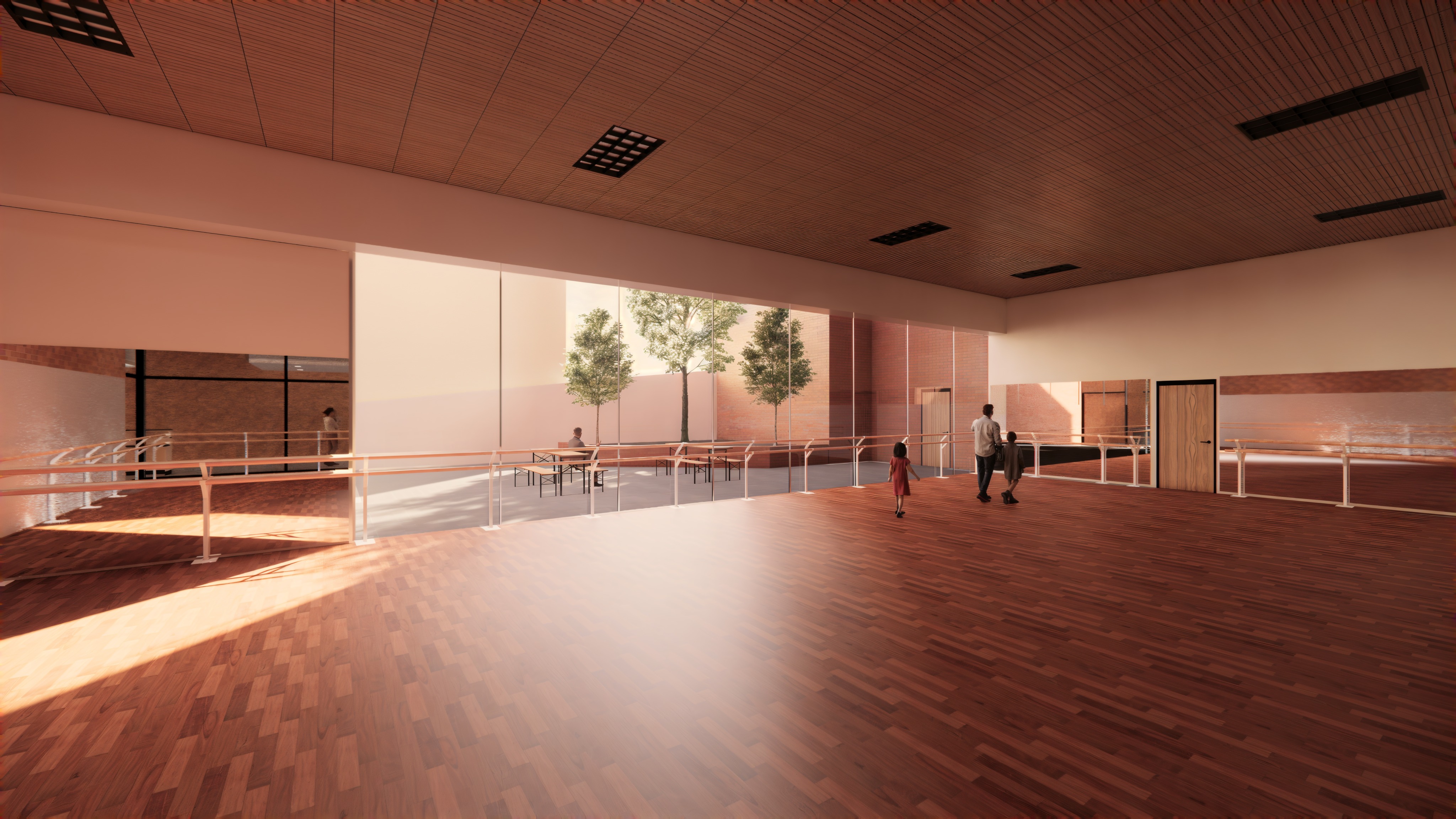 dance studio with outdoor seating area