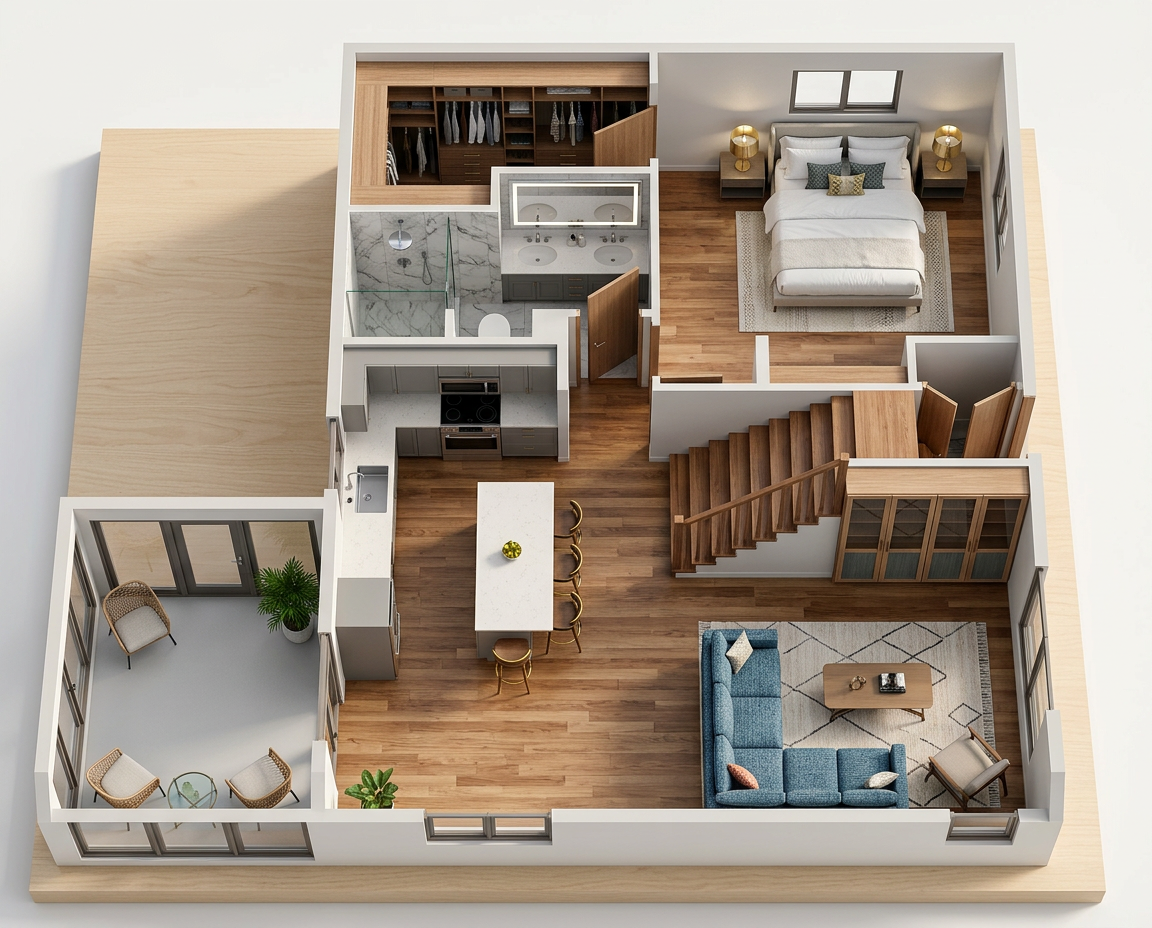 enhance with modern touches and realistic lighting