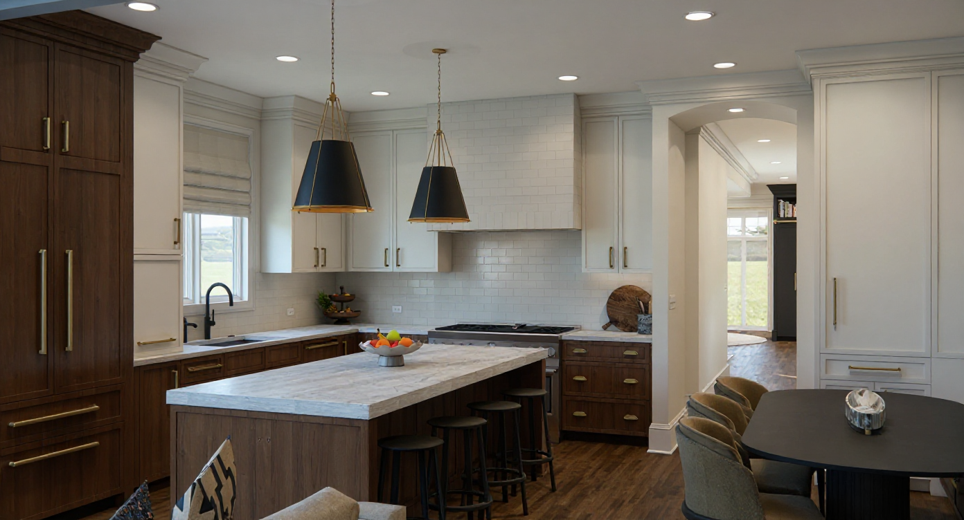 modern white siding architectural exterior rendered in cinematic daylight lighting rolling farmland with a vineyard in the background sonoma style warm low angle sunlight grazing natural wood textures high fidelity photorealistic visualization crisp shadow falloff refined fa ade geometry richly detailed grain patterns soft atmospheric depth subtle lens bloom calm minimal landscaping premium architectural photography mood ultra clean composition and materials