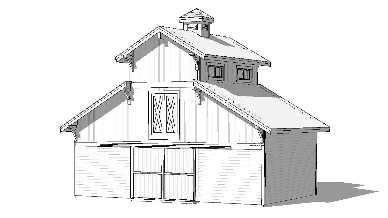 clean architectural exterior rendered in cinematic daylight lighting vertical cedar board batten wood siding on the top floor with horizontal cedar wood siding on the lower floor cedar barn doors with black trim black metal standing seam roof high desert background dry arid environment clouds in the sky arizona southwest landscape natural rock formations in the background cinematic environment natural wood textures high fidelity photorealistic visualization crisp shadow falloff refined facade geometry richly detailed grain patterns soft atmospheric depth premium architectural photography mood ultra clean composition and materials