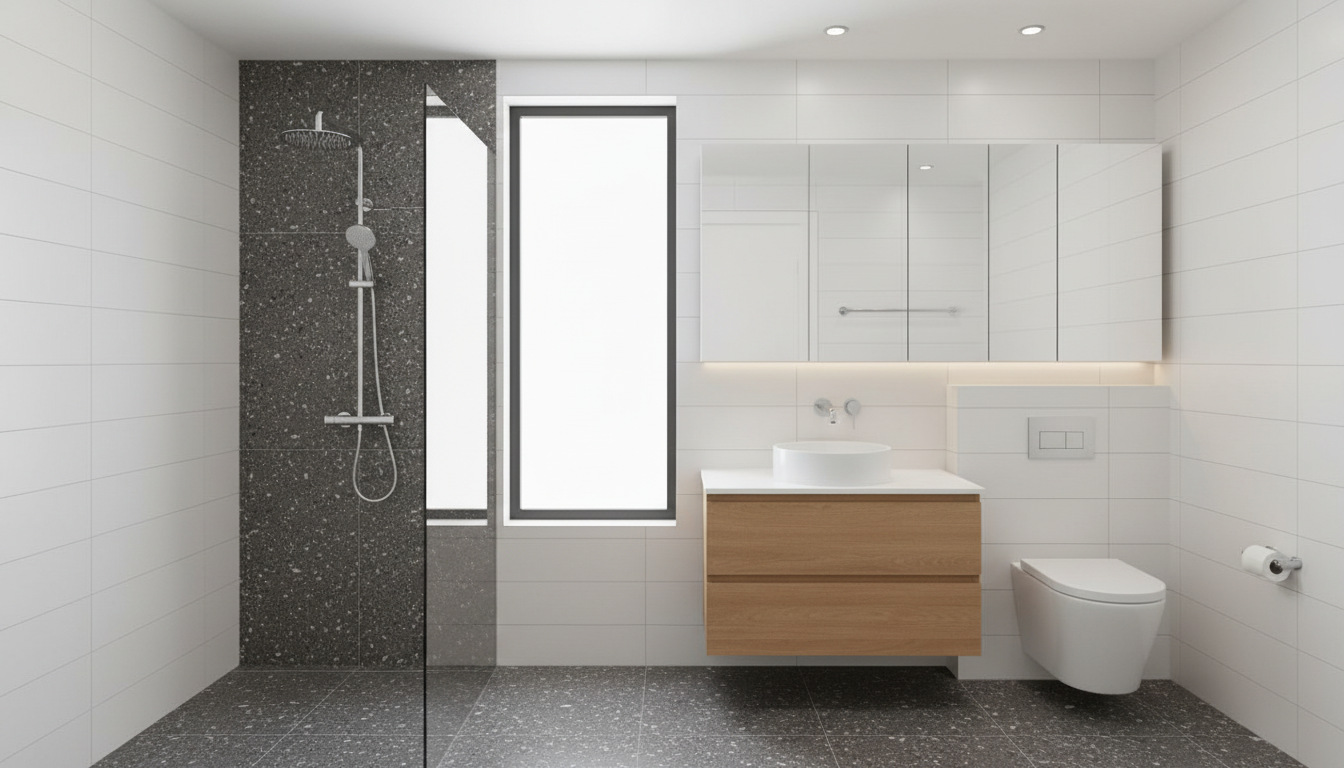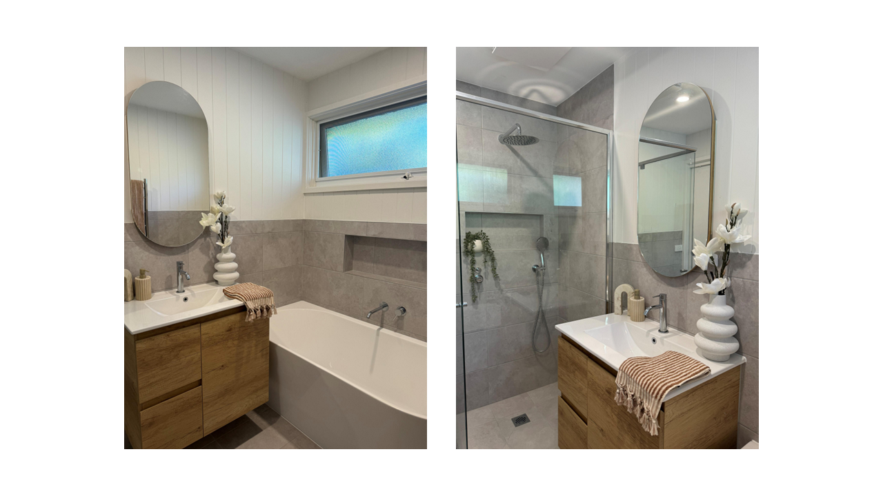 combine these two images into one bathroom with one vanity one seperate shower one seperate bath