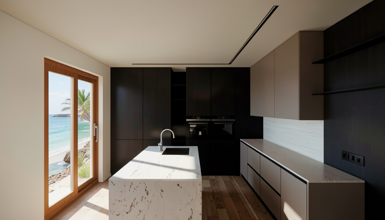 the walls are lightly plastered in light greige