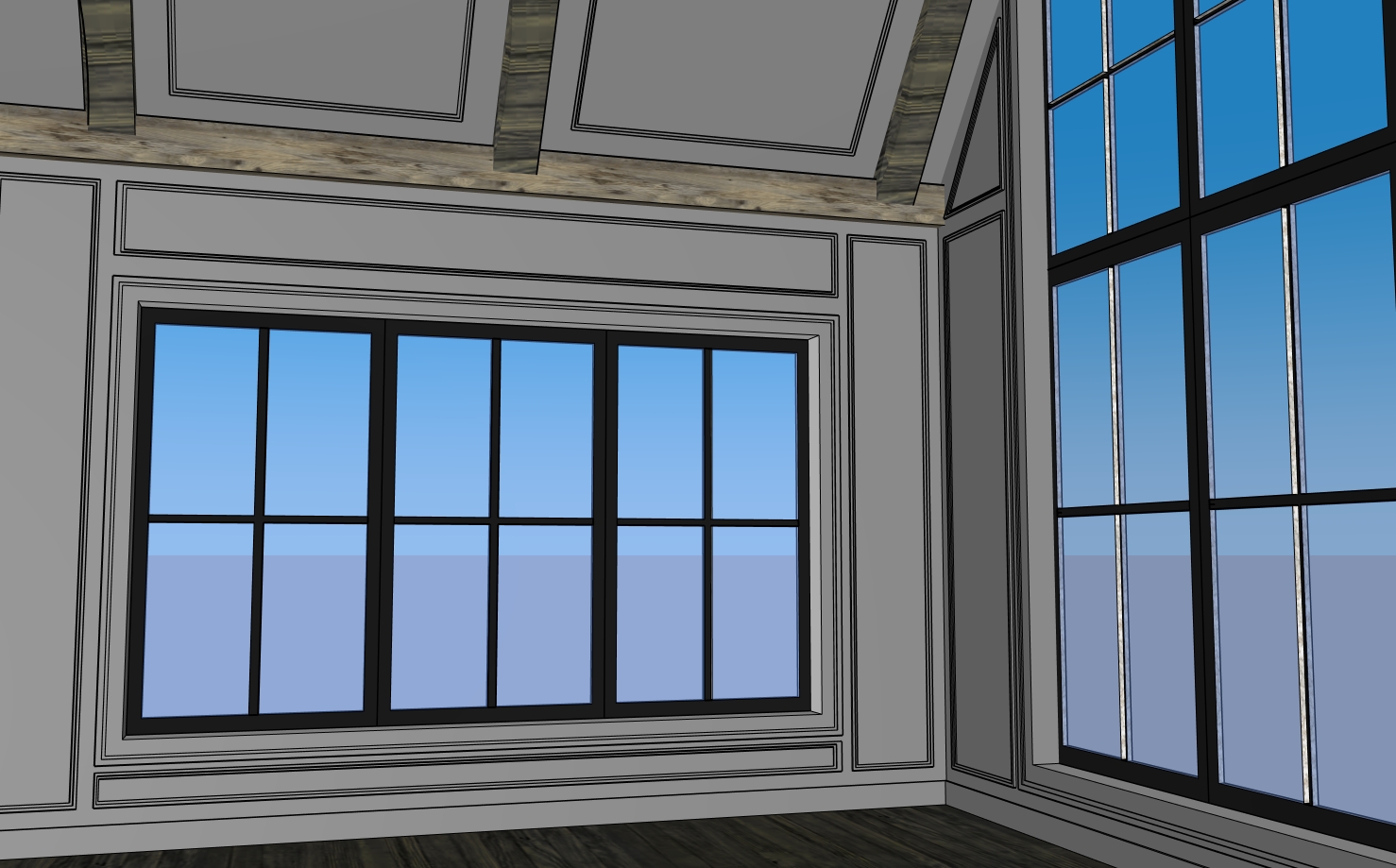 add wood beam header above windows