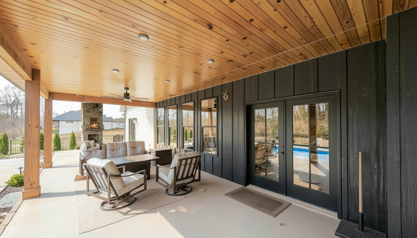 exterior shot finishes will be smartstone taj mahal benchtops polyurethane white painted lower shaker doors polytec boston oak shaker surano tall fridge wall curved rangehood boxing and lower cabinet