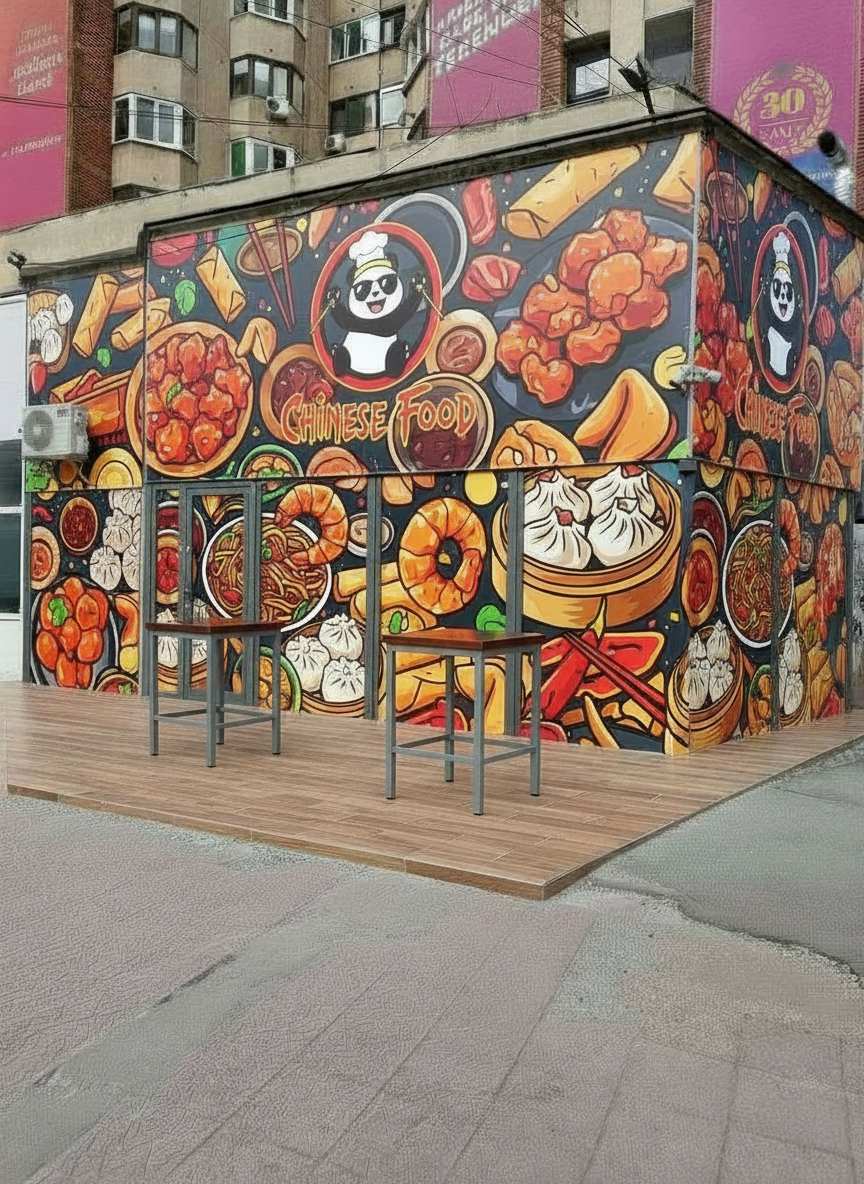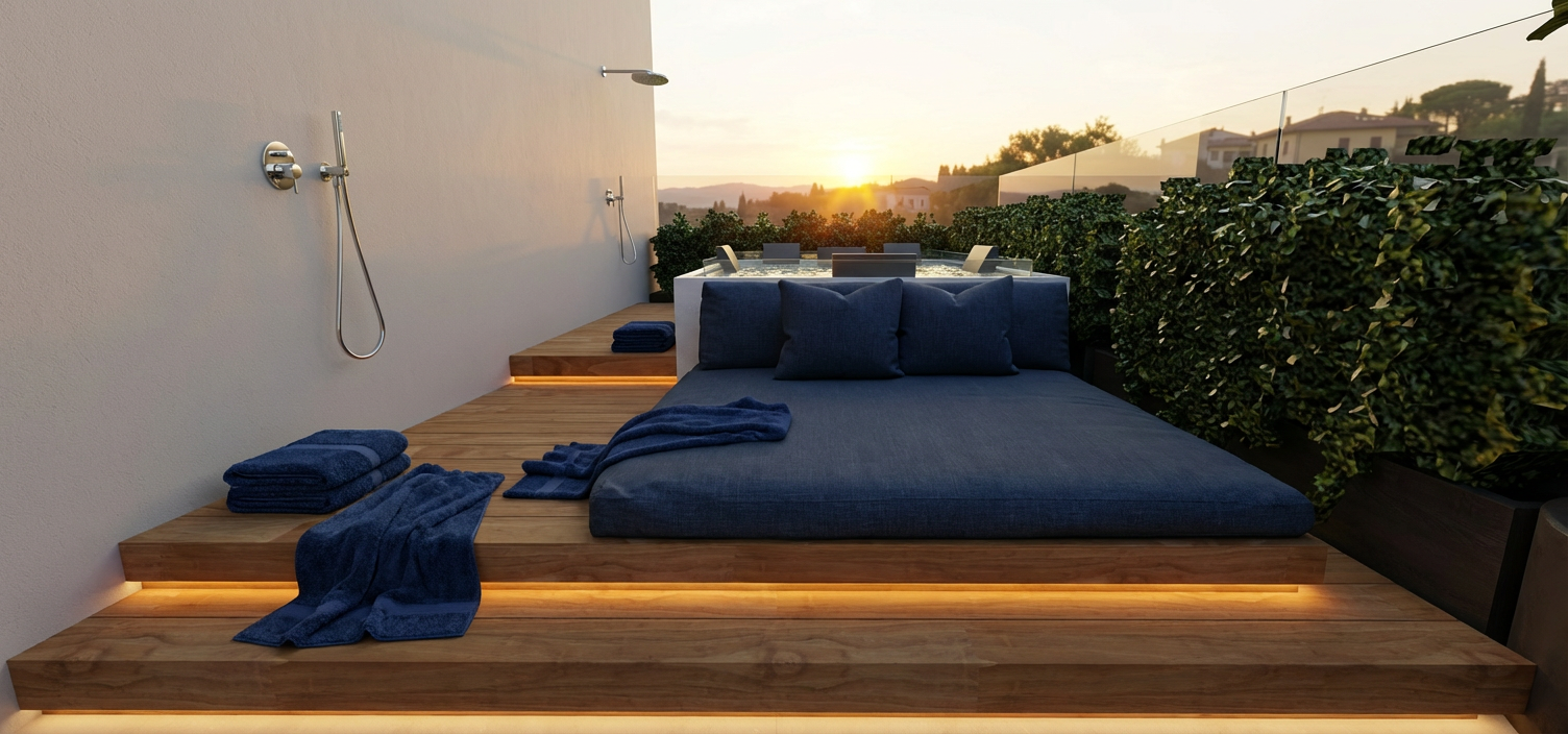 can you create a soft render with blue skies and grey metal roofing show the flooring as hardstanding in the courtyard of both buildings and green maintained grass behind the longer shed