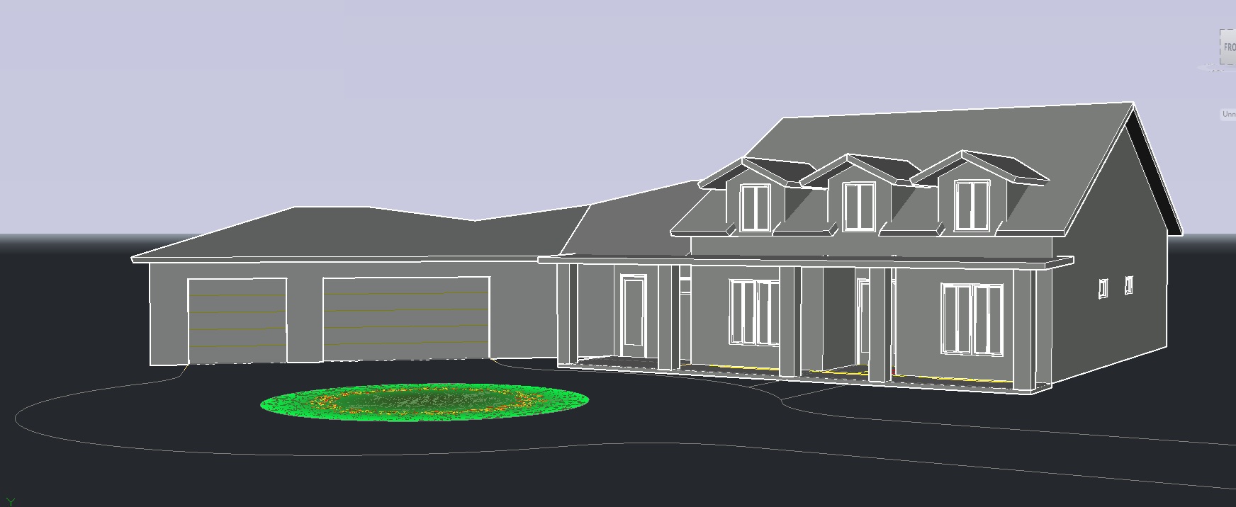 contemporary exterior shot a modern farmhouse white walls and with metal dark gray roofing and a 3 car garage on the left white hardi plank horizontal exterior walls surrounded by lush greenery in florida setting plain concrete porte cochere surround it with palm trees and a dawn setup with lights lit up architecture