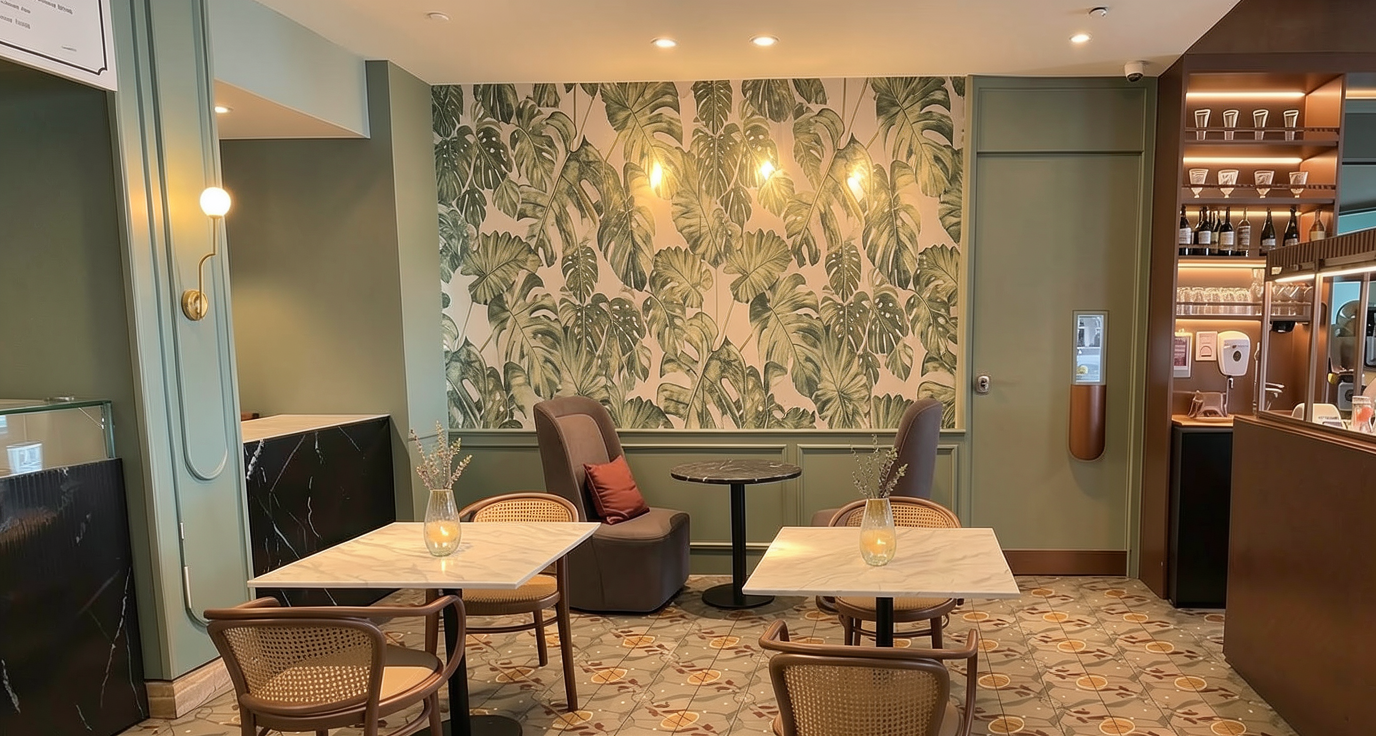 mantieni texture immagine boiserie frontale in legno rovere vena come immagine abbastanza chiaro piastrelle a sinistra colore bordeaux come immagine lucido non stonalizzato pavimento come texture immagine muro come intonaco esterno bianco strip led verticale a lato della boiserie che spara verso i sanitari specchio rettangolare ciotola in ceramica bianca lucida rubinetti in acciaio satinato sanitari in ceramica lucida specchio a tutta altezza sulla destra c un faretto anche in doccia mantieni texture pavimento anche nella mensola sotto il lavabo manteniamo le piastrelle sulla parte superiore