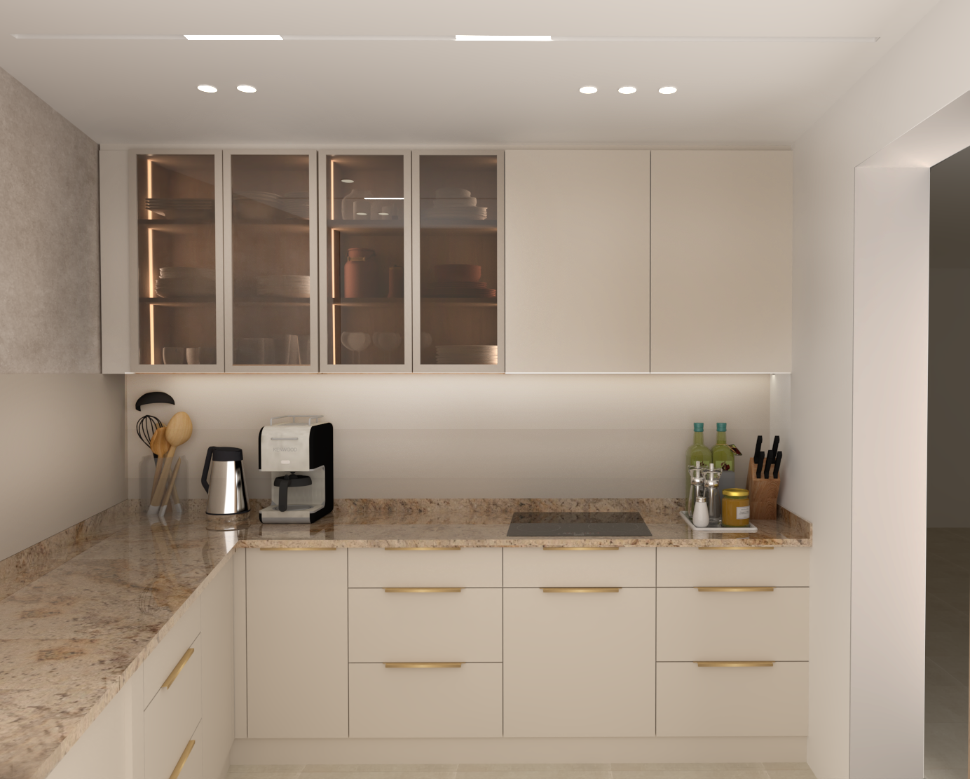 maintan original colors of materials create foto realistic image do not add any new thing light artificial from cealin downlighter only this room do not have windows