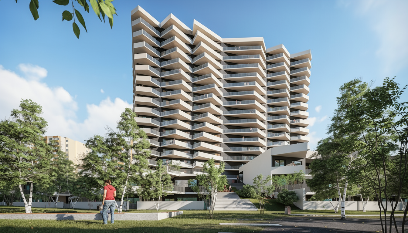 exterior shot auditorium interior please follow the model geometry fill seatings and apply textures and colours led light from vertical panel edges black ceiling with spotlights black sidewalls black side doors carpet with grey green black modern pattern