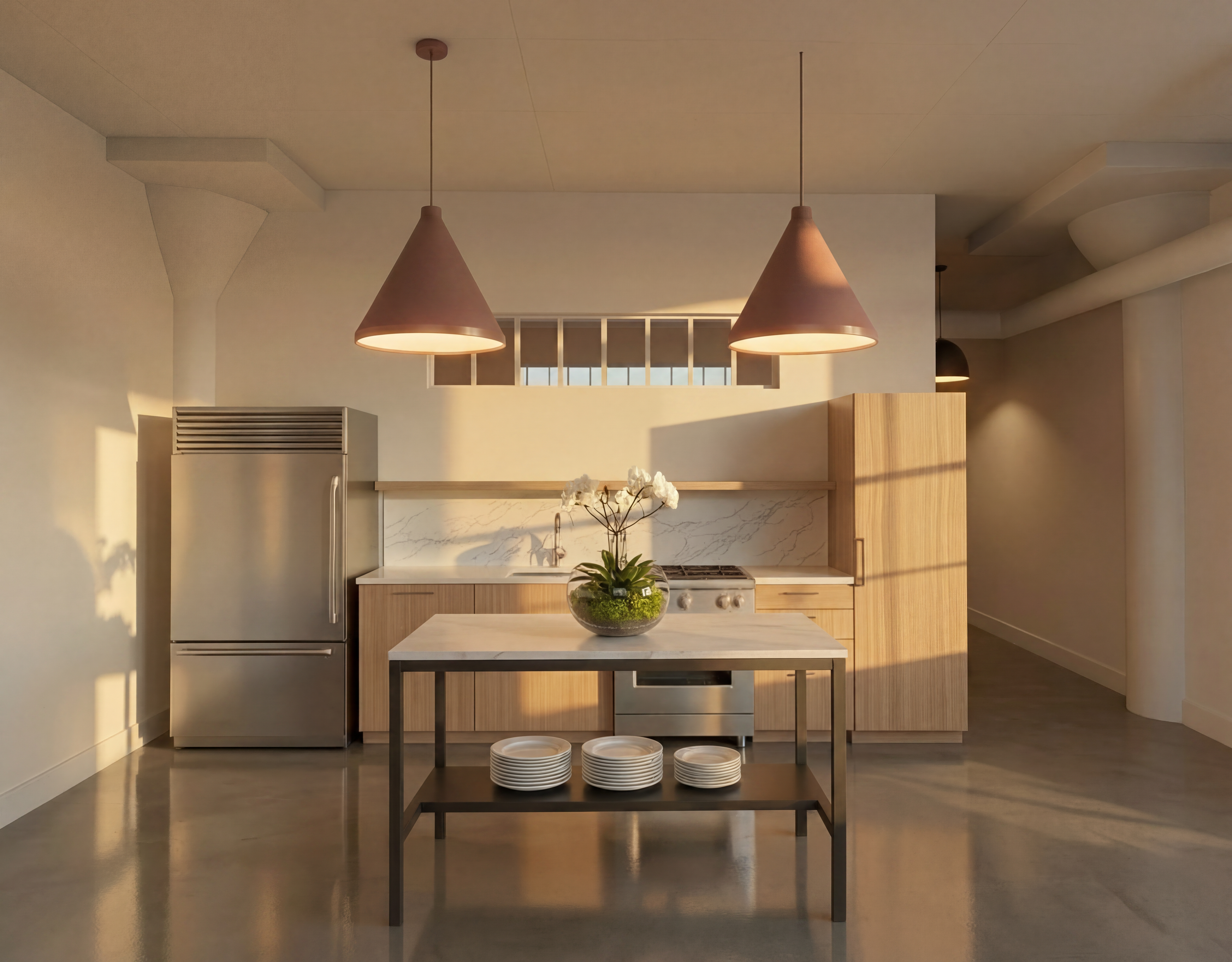solid concrete base matte texture soft grey tone heavy material contrast with warm walnut wood minimal architectural object
