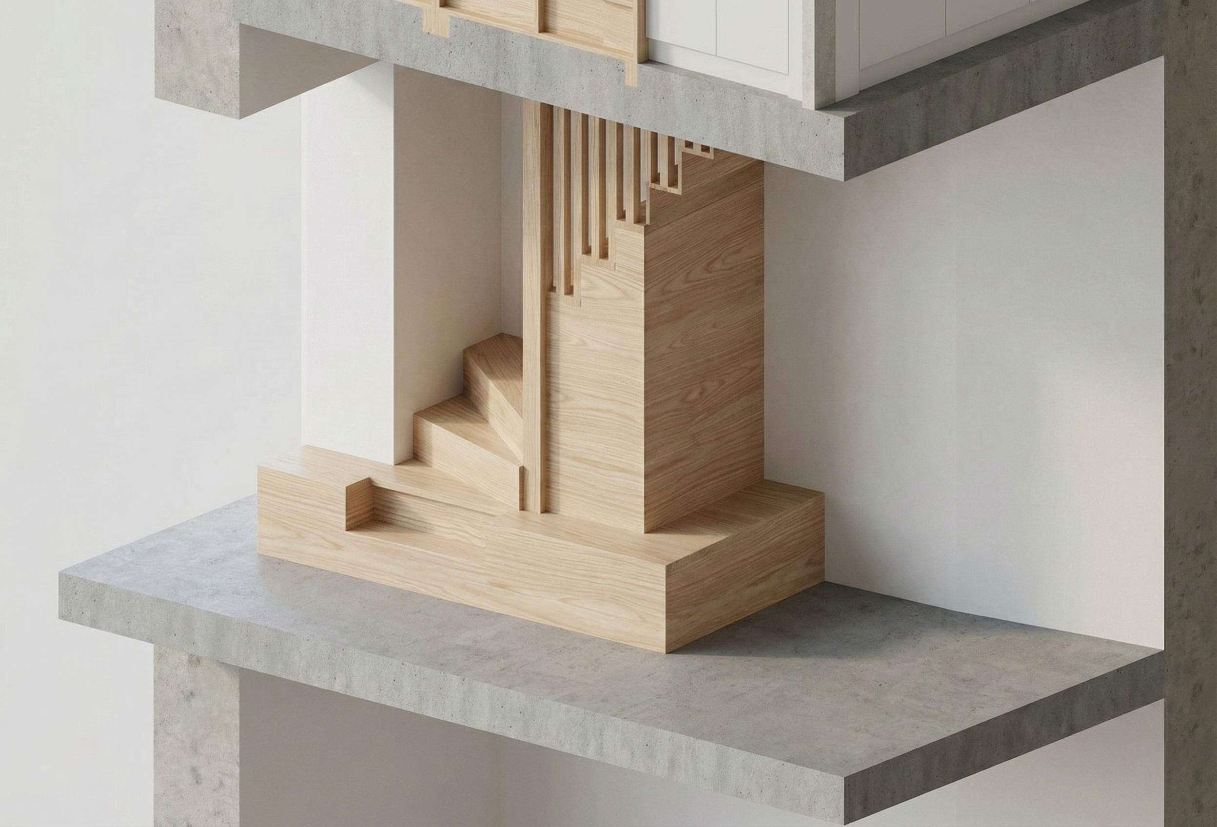 luxury office space on the 6th floor in an urban environment 6 workstations minimal style interior finishes white plaster exposed concrete floor and ceilings incorporate a rough tactile architectural element such as stone brick etc