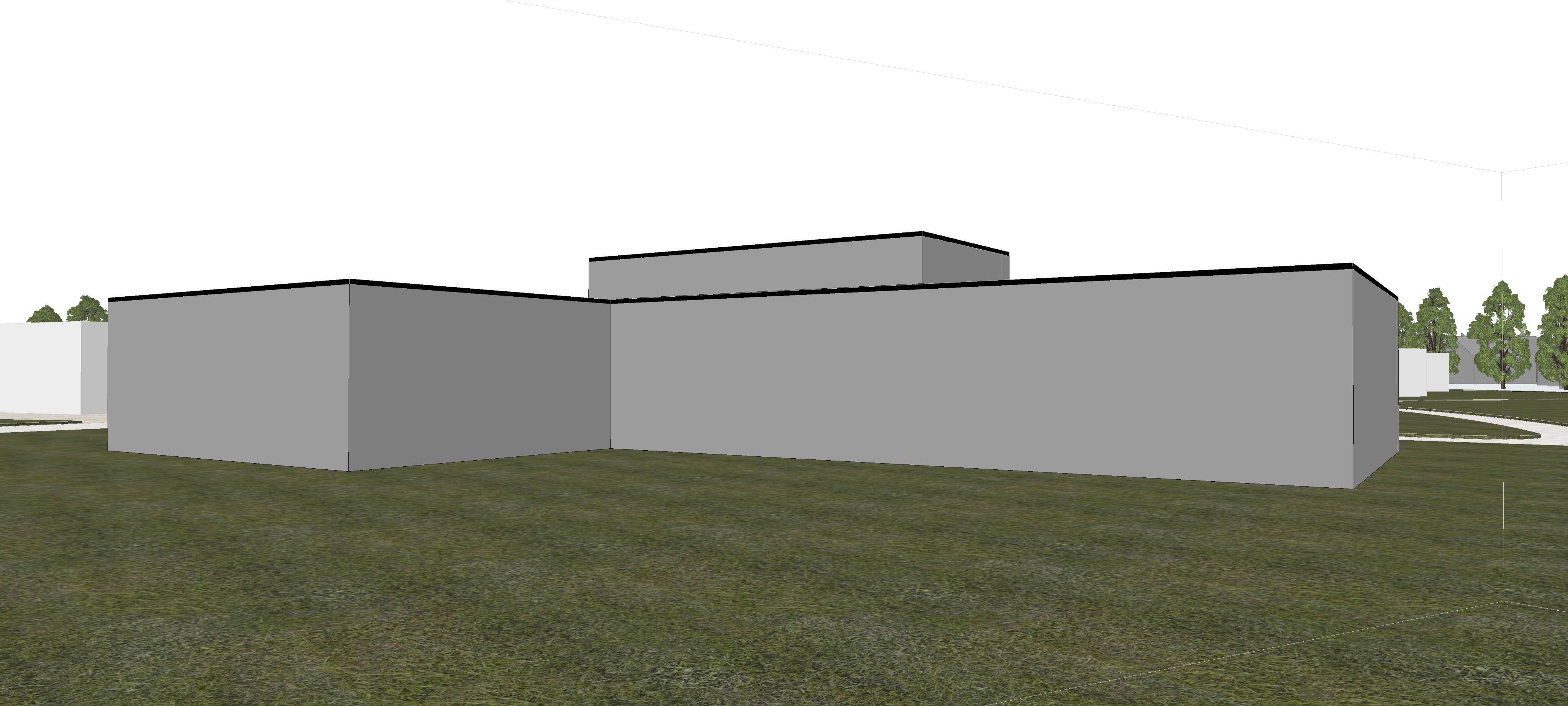 create a photorealistic image of a modern single story house with contemporary minimalist architecture and a flat roof the building has large floor to ceiling windows and partially uses light colored wooden cladding on the facade combined with modern materials like glass and concrete the house includes a slightly elevated central section where narrow low horizontal windows run continuously around the building in front of the house there is a spacious terrace that connects to a well maintained green lawn with flowers and simple landscaping the entrance is fully accessible for wheelchair users with a gently sloped ramp integrated naturally into the design the architectural style should resemble modern yacht club architecture light elegant and coastal add exterior cornices and detailing typical for seaside buildings that provide shade and protection from weather bright natural daylight realistic materials high detail architectural visualization photorealistic rendering