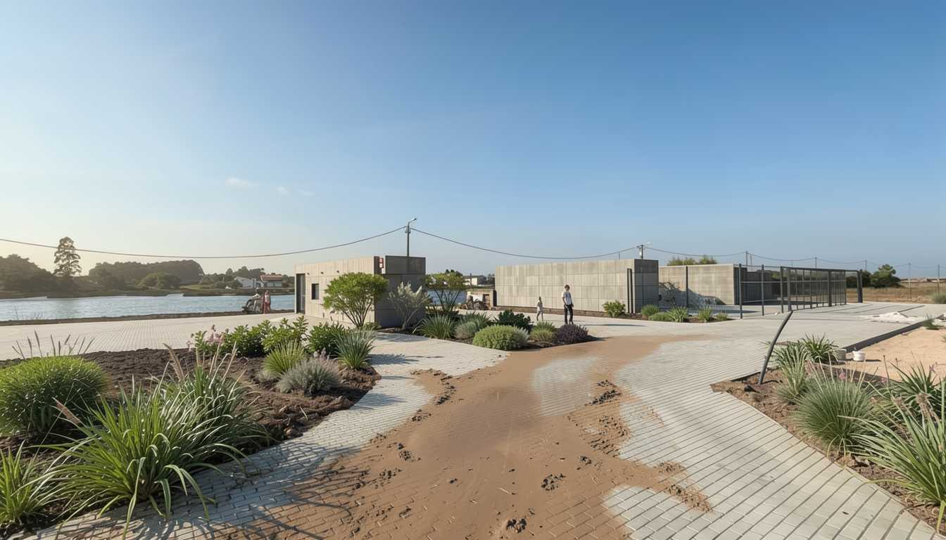 tadao ando exterior shot use this reference image as inspiration to create a view from underneath the collonade looking out over a garden architecture