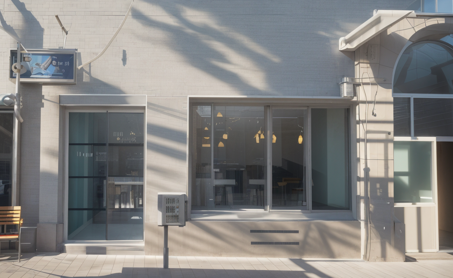 renaissance aerial shot aerial bird s eye site plan of a low rise urban block buildings only 2 stories tall with flat and pitched rooftops showing hvac units solar panels skylights and rooftop details natural shadows and sunlight asphalt parking lots with white striping sidewalks crosswalks trees landscaped greenery and pedestrian pathways keep scale human and intimate not high rise photorealistic rooftop textures with metal concrete or shingle finishes architecture