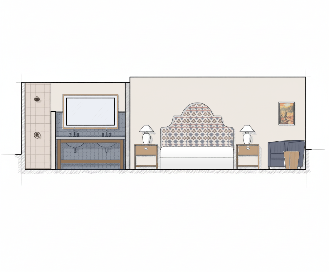 covert this to a pencil sketch with light water color wash to show hints of color pattern