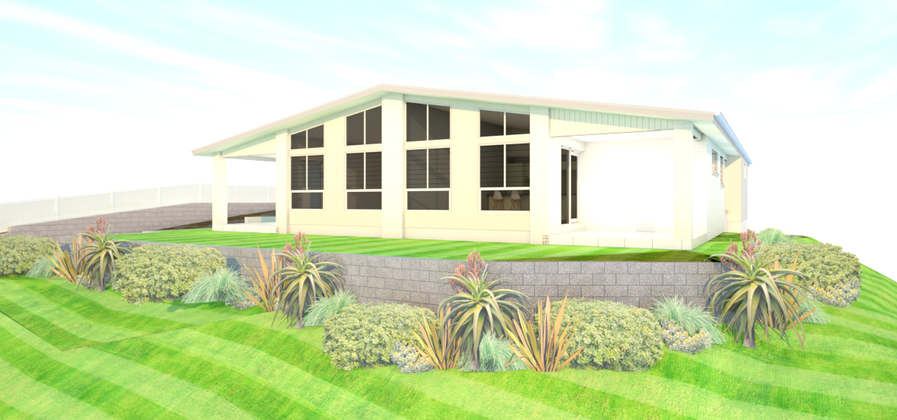 render a photorealistic 3d perspective of this house in cairns queensland australia reference the current material style just enhance them keep model geometry the same windows doors roof walls sidings posts garage door pavement driveway make a lush vegetation that looks native to cairns do not change the view only enhance the current materials and make the landscape nicer vegetation detailed textures in the fibre cement siding and glass less reflection and a vibrant clear sky with light atmospheric depth render in hyper realistic architectural visualization quality 8k resolution