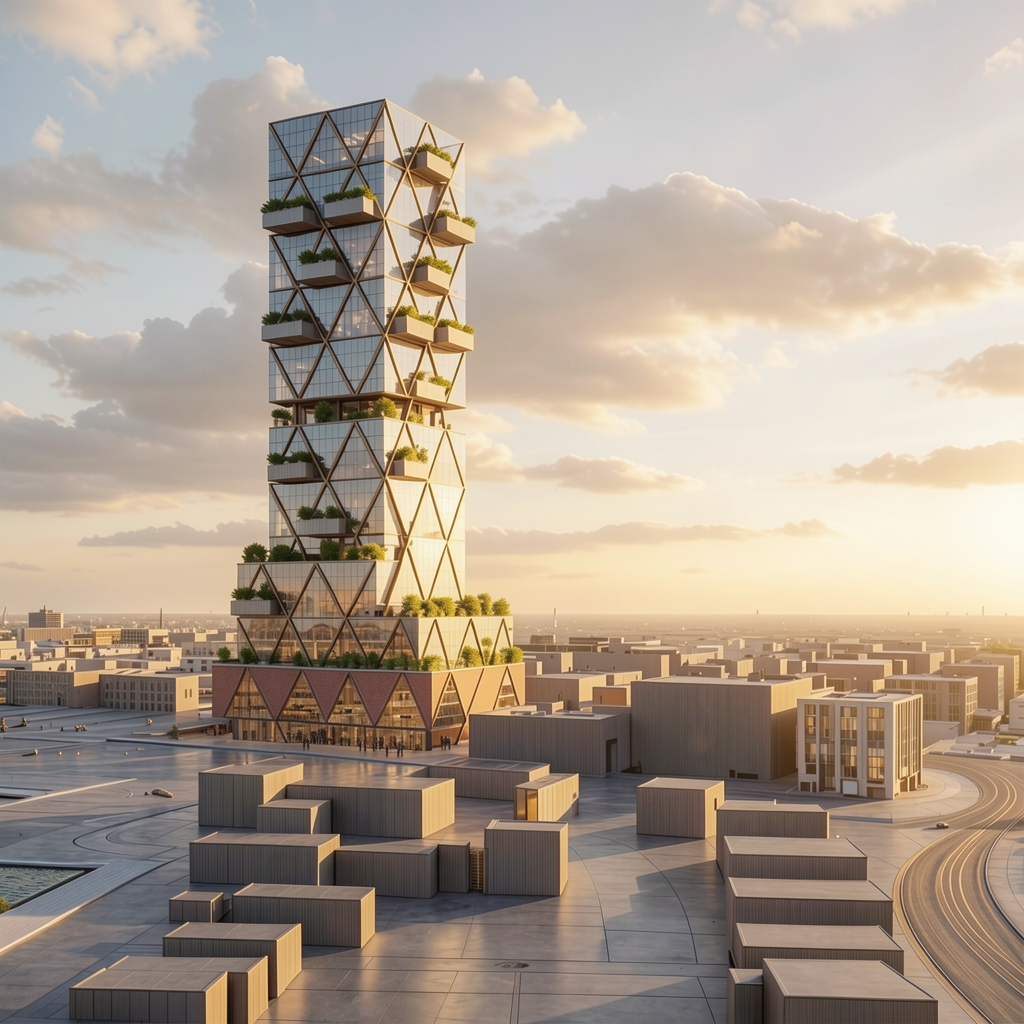 hyper realistic architectural photography golden hour setting warm interior and exterior lighting glowing windows cozy ambiance cinematic atmosphere highly detailed textures