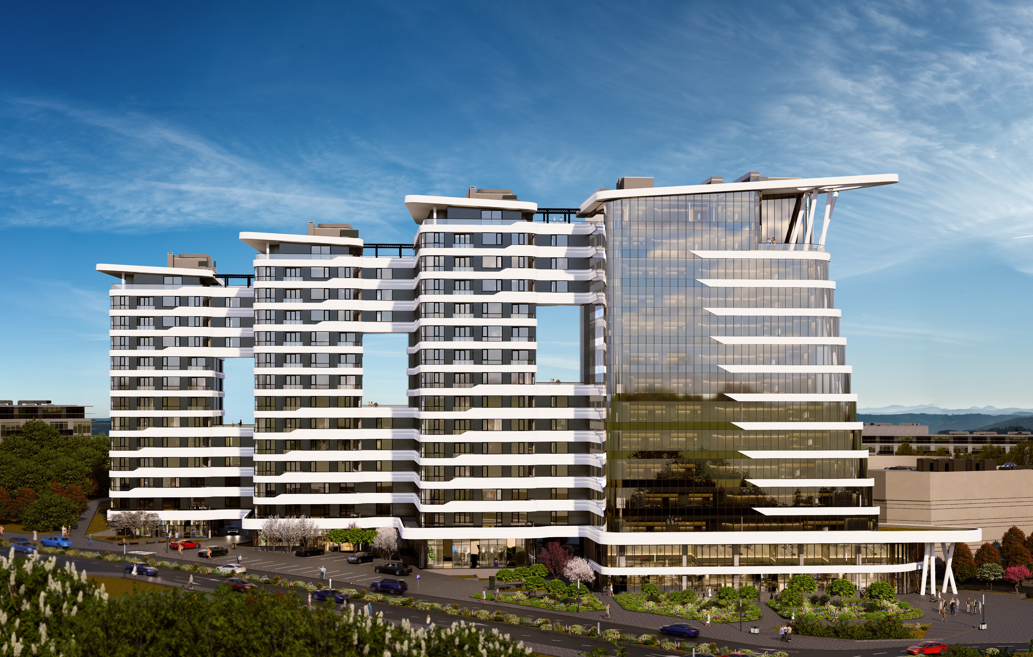 make the building on this photo like a minimalistic 3d art on an entrance wall of an office space