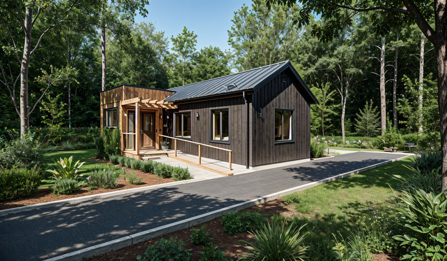 don t change the structure a modern home made from the following materials white stacked stone veneer dull black aluminum acm metal paneling horizontal brown wood siding and a black aluminum metal fascia enhance each of these materials to have more realistic shadows and textures add a dull warm light illuminating from the interior add minimal landscaping and vegetation around the exterior of the home with tall grass and flower bushes make the background a semi arid hill with sagebrush and dry grass enhance the grass to be more dry and semi arid and look more realistic with sagebrush and dry grasses in the foreground of the image