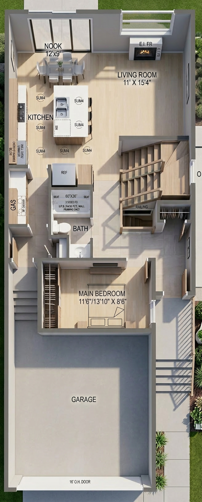 do not crop the image make the brick at the bottom be light gray and white washed in color make the panel siding sections black make most of the siding white use brown for accents render the entire image do not cut out or crop any of the image
